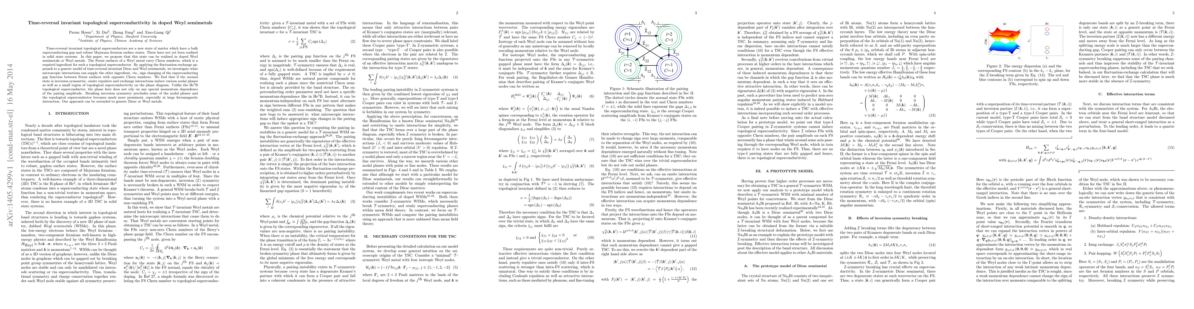 This paper proposes that time-reversal invariant topological superconductivity can be realized in doped Weyl semimetals, utilizing their Chern number Fermi surfaces and exploring interactions that induce a sign-changing superconducting gap. While inversion symmetry allows for various nodal phases, breaking this symmetry enhances the topological superconductivity, particularly with strong ferromagnetic interactions.
