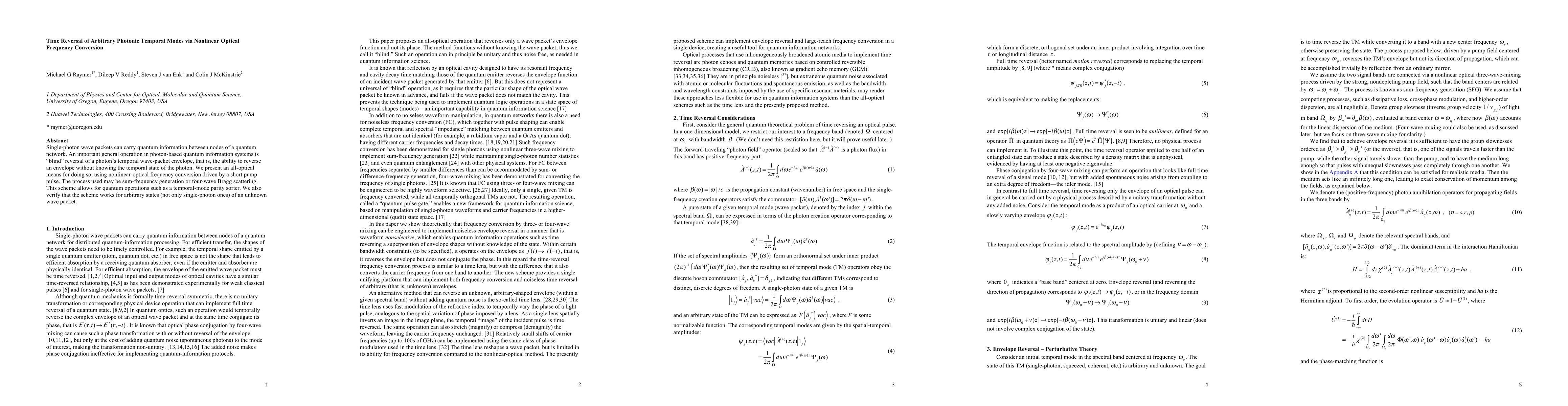 This paper proposes an all-optical method for blind reversal of photonic temporal wave-packet envelopes using nonlinear optical frequency conversion, enabling quantum operations like temporal-mode parity sorting and demonstrating functionality for arbitrary unknown states.