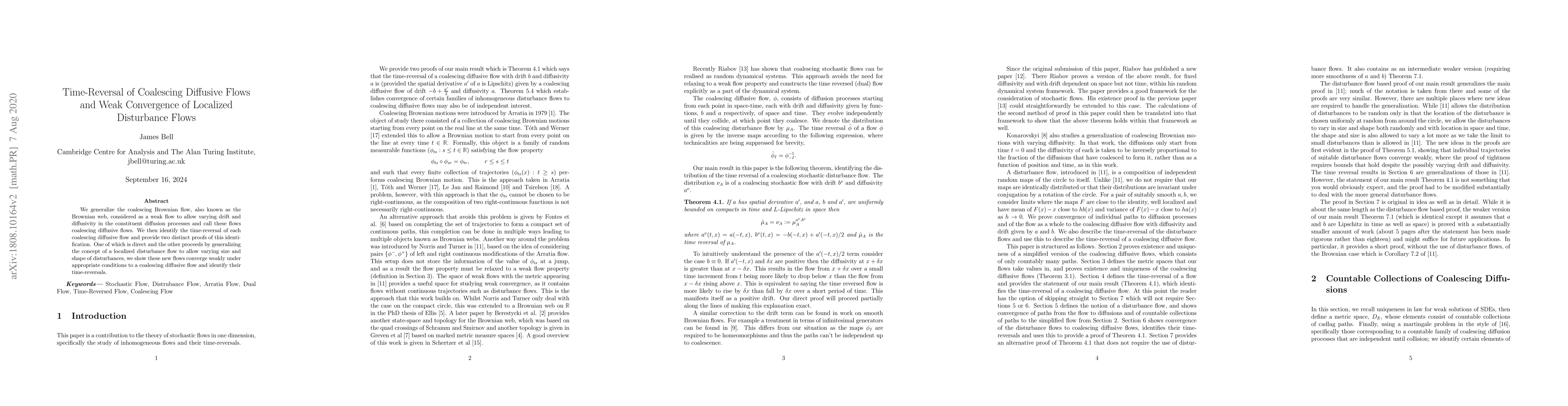 This paper generalizes coalescing Brownian flows to coalescing diffusive flows with variable drift and diffusivity, identifies their time-reversals, and provides two proofs for this identification. It also extends localized disturbance flows to allow varying disturbance sizes and shapes, showing their weak convergence to coalescing diffusive flows and identifying their time-reversals.