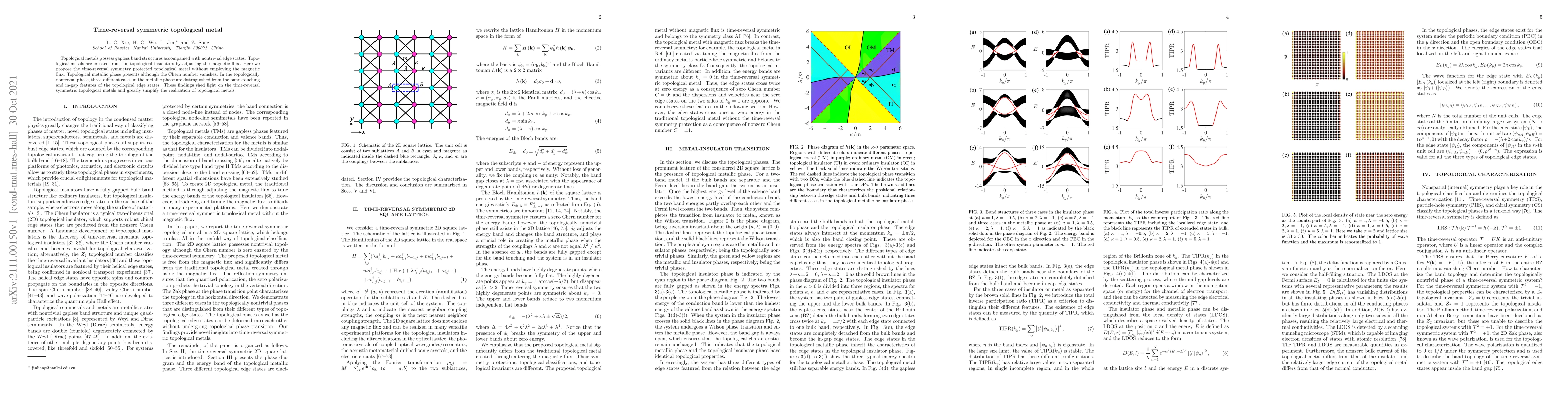 This paper proposes a time-reversal symmetry protected topological metal realized without magnetic flux, revealing a topological metallic phase where the Chern number vanishes. The study distinguishes three metallic phase cases based on edge state features, simplifying the creation of topological metals.