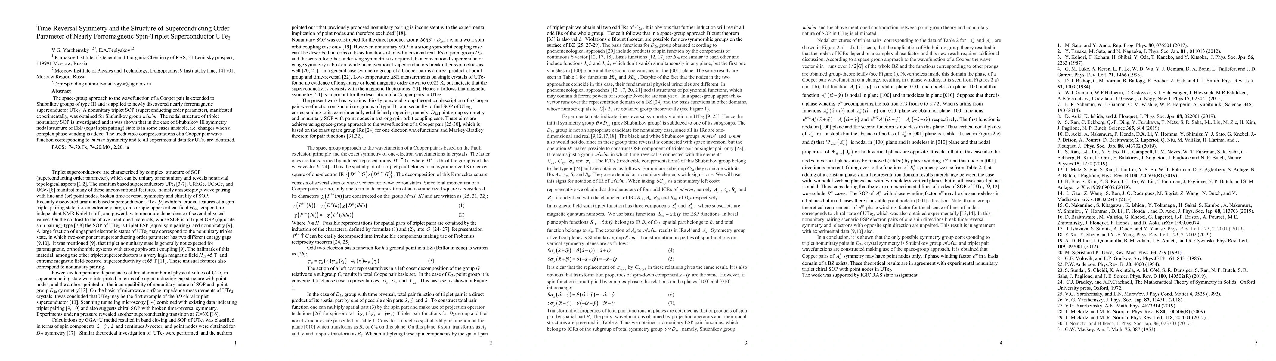 The paper presents a space-group approach to the wavefunction of Cooper pairs, extending it to Shubnikov groups of type III, and identifies irreducible corepresentations for the nearly ferromagnetic superconductor UTe2.