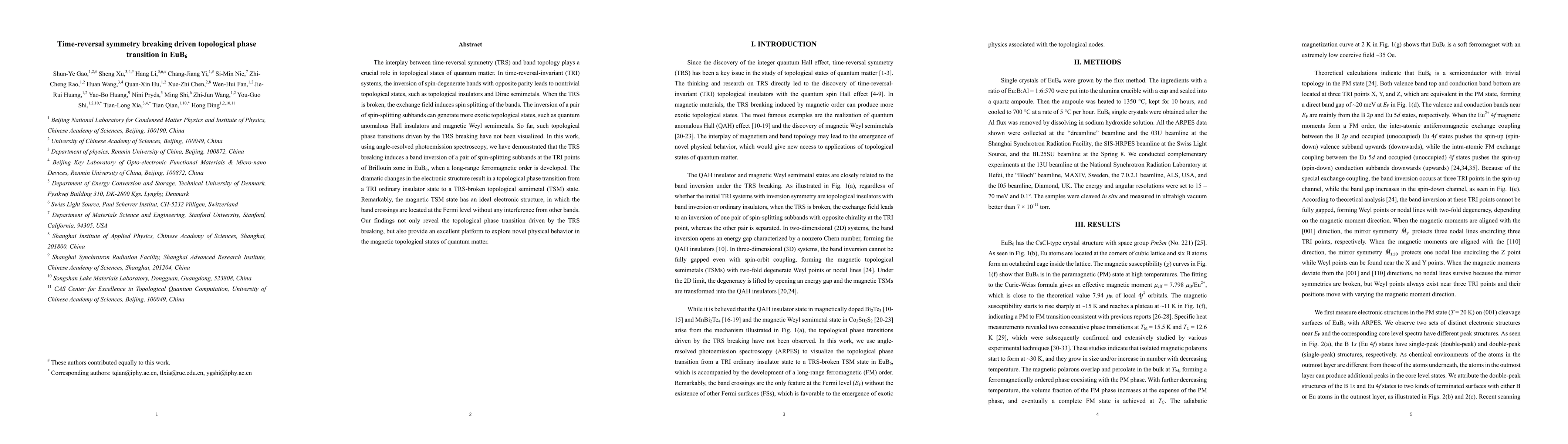 This study demonstrates that breaking time-reversal symmetry induces a topological phase transition in EuB$_6$, transitioning it from an ordinary insulator to a topological semimetal with ideal band crossings at the Fermi level. The transition is visualized via angle-resolved photoemission spectroscopy, revealing the emergence of exotic magnetic topological states.