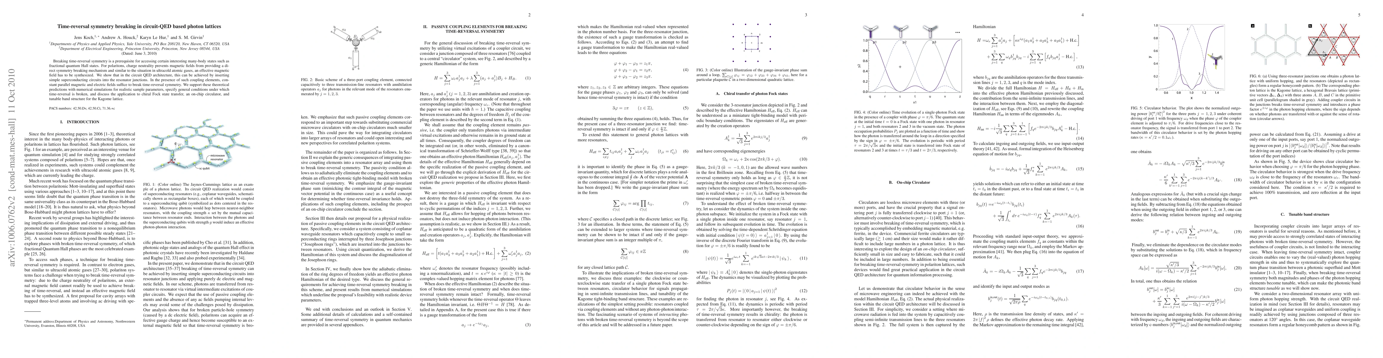 This paper demonstrates how time-reversal symmetry can be broken in circuit-QED systems using superconducting circuits to synthesize an effective magnetic field, enabling access to many-body states like fractional quantum Hall states. The study supports theoretical predictions with numerical simulations and explores applications such as chiral Fock state transfer and on-chip circulator functionalities.