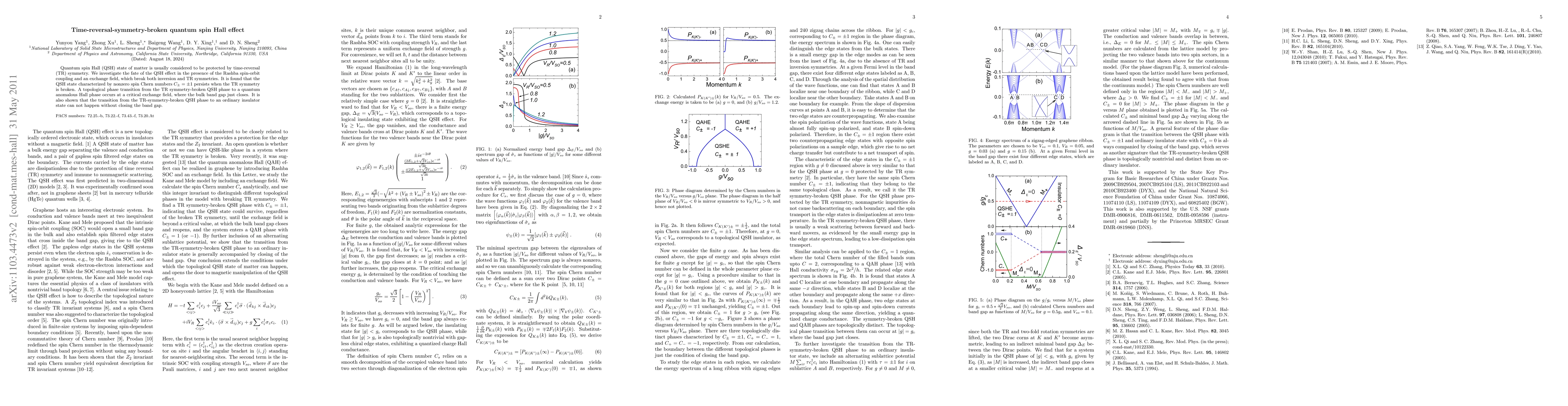 This paper investigates the quantum spin Hall effect (QSH) under broken time-reversal symmetry due to Rashba spin-orbit coupling and an exchange field. It finds that the QSH state persists despite the symmetry break, but a topological phase transition to a quantum anomalous Hall phase occurs at a critical field where the band gap closes.