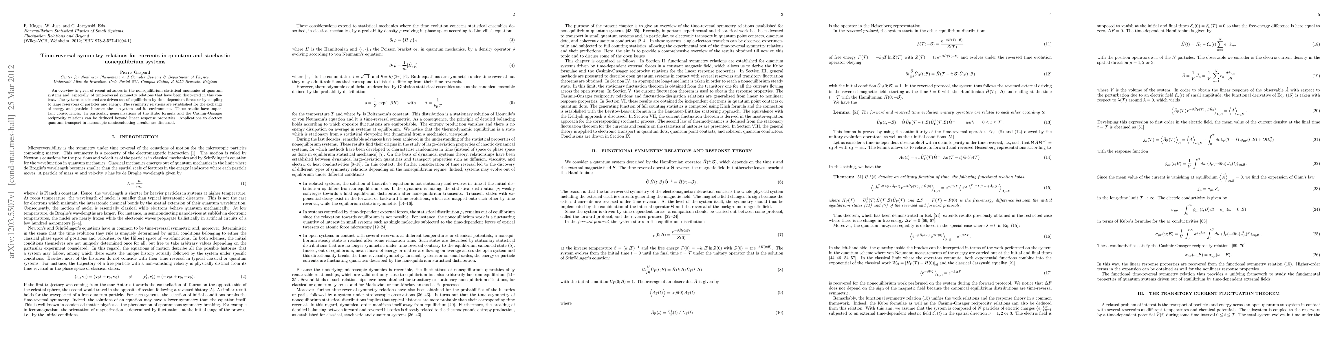 This paper explores advancements in quantum nonequilibrium statistical mechanics, focusing on time-reversal symmetry relations for energy and particle exchange in subsystems coupled to environments. It presents generalizations of the Kubo formula and Casimir-Onsager reciprocity relations, with applications to electron transport in semiconducting circuits.