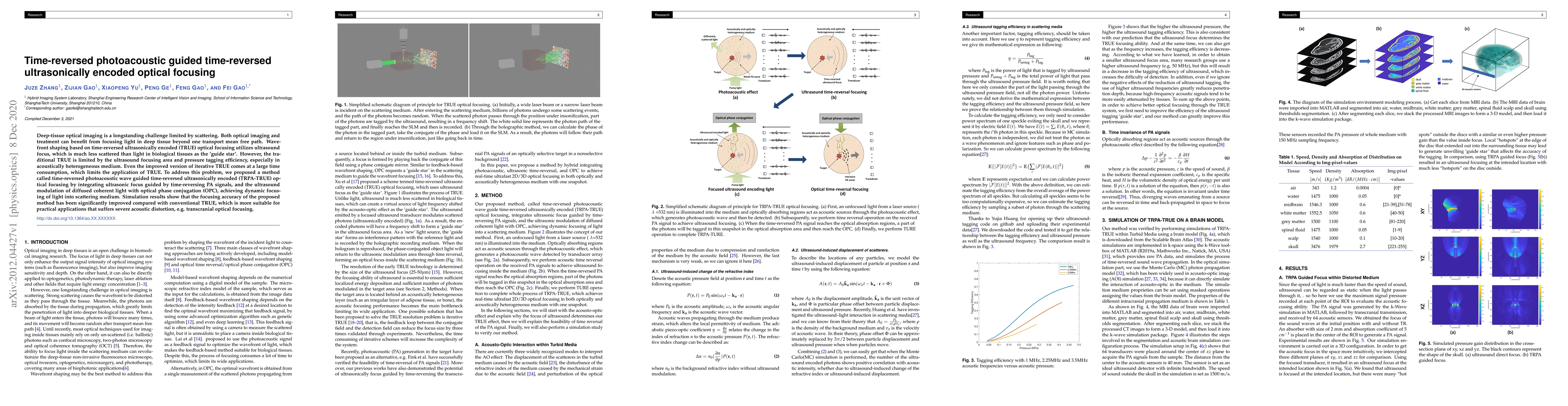 This paper proposes TRPA-TRUE optical focusing, which combines time-reversed photoacoustic wave guidance and ultrasonically encoded focusing to enhance deep-tissue optical imaging by overcoming scattering challenges, outperforming traditional TRUE in accuracy and efficiency.