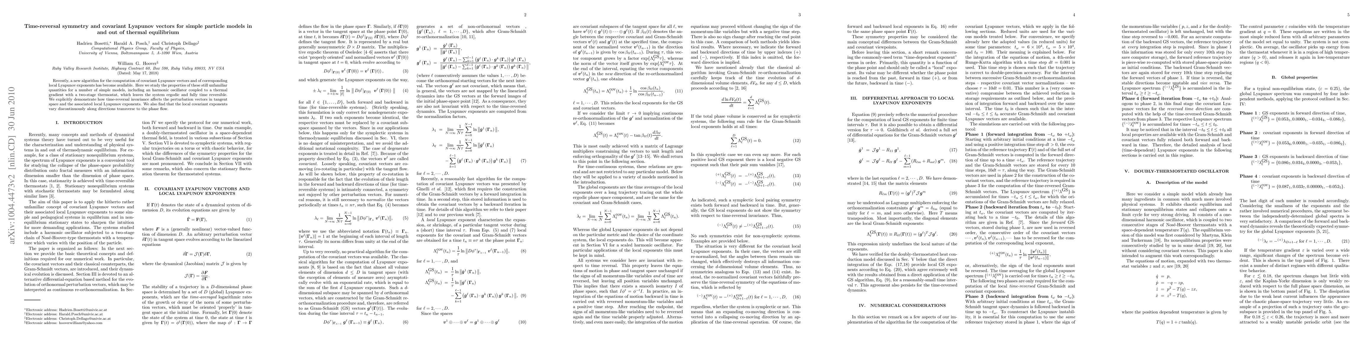 This paper explores the computation of covariant Lyapunov vectors and exponents for simple particle models, demonstrating how time-reversal symmetry influences perturbation vectors and local Lyapunov exponents, and noting the discontinuous variation of covariant exponents across phase flow directions.