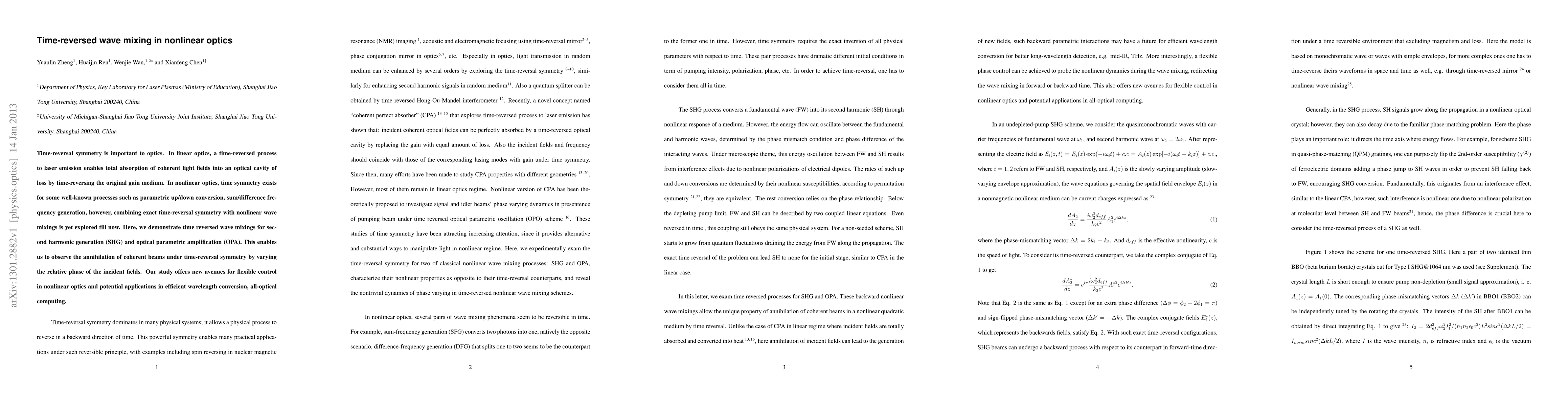 This paper demonstrates time-reversed wave mixing in nonlinear optics for second harmonic generation and optical parametric amplification, showcasing coherent beam annihilation under time-reversal symmetry. The study proposes new methods for flexible control and potential applications in wavelength conversion and all-optical computing.