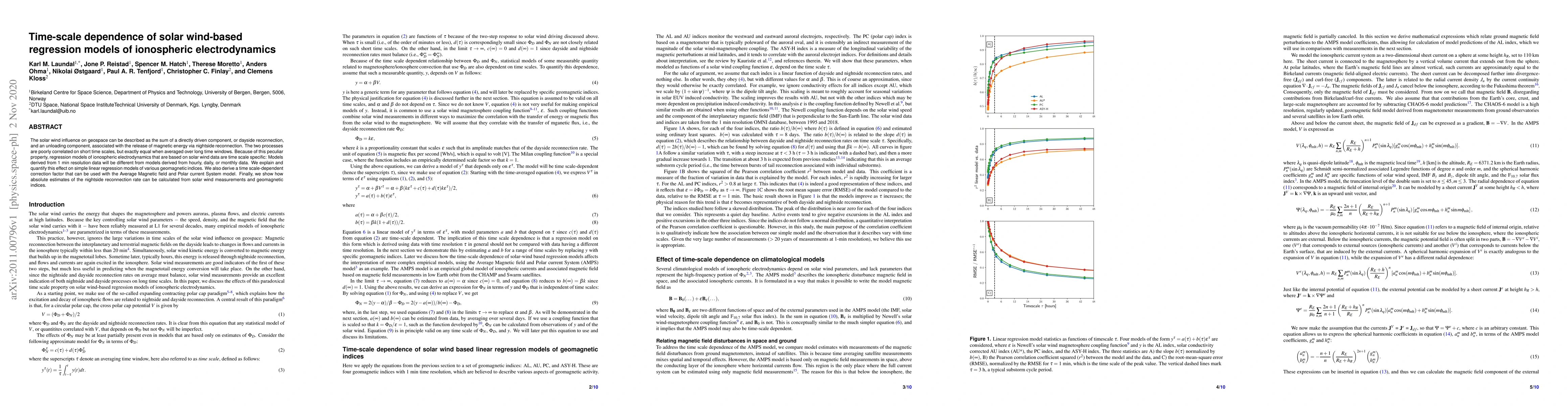 This paper investigates how solar wind influences on ionospheric electrodynamics vary based on the time scale of data resolution, demonstrating that regression models are time scale specific. It proposes a time scale-dependent correction factor for the Average Magnetic field and Polar current System model and shows how to estimate nightside reconnection rates from solar wind and geomagnetic data.