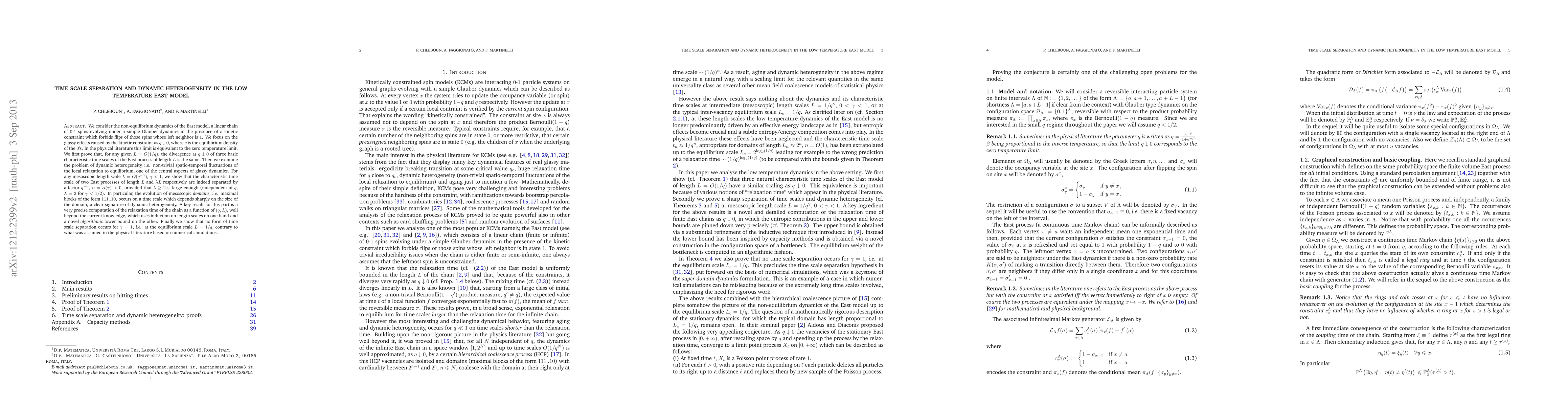 This paper investigates the non-equilibrium dynamics of the East model, revealing time scale separation and dynamic heterogeneity as the equilibrium density of 0's approaches zero. It demonstrates that characteristic time scales diverge and separate for mesoscopic length scales, highlighting the sharp dependence on domain size, a signature of dynamic heterogeneity, while refuting previous assumptions about time scale separation at equilibrium length scales.