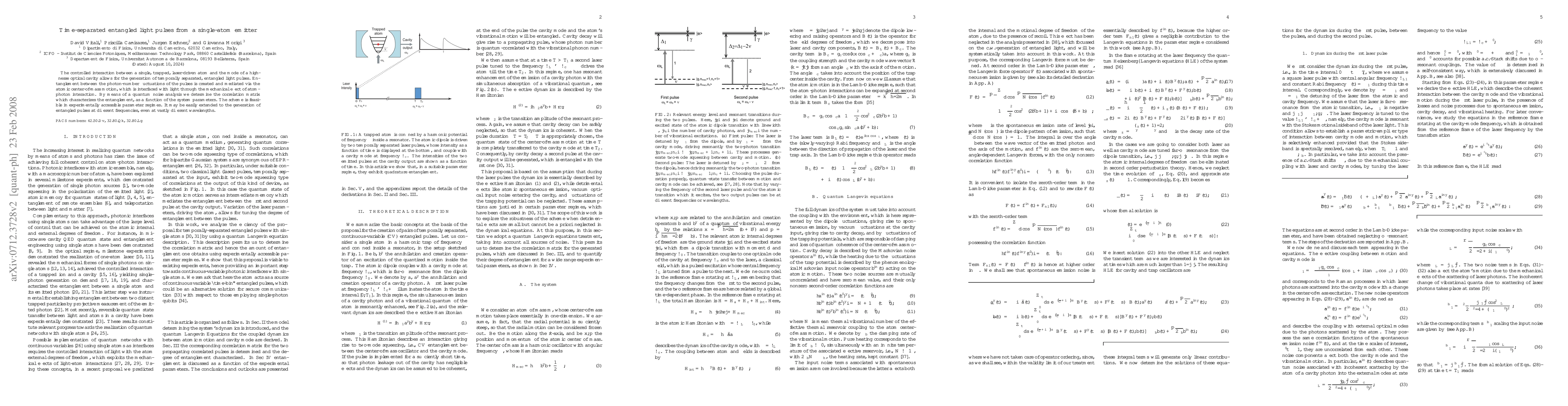The controlled interaction between a single, trapped, laser-driven atom and the mode of a high-finesse optical cavity allows for the generation of temporally separated, entangled light pulses. Entanglement between the photon-number fluctuations of the pulses is created and mediated via the atomic center-of-mass motion, which is interfaced with light through the mechanical effect of atom-photon interaction. By means of a quantum noise analysis we determine the correlation matrix which characterizes the entanglement, as a function of the system parameters. The scheme is feasible in experimentally accessible parameter regimes. It may be easily extended to the generation of entangled pulses at different frequencies, even at vastly different wavelengths.