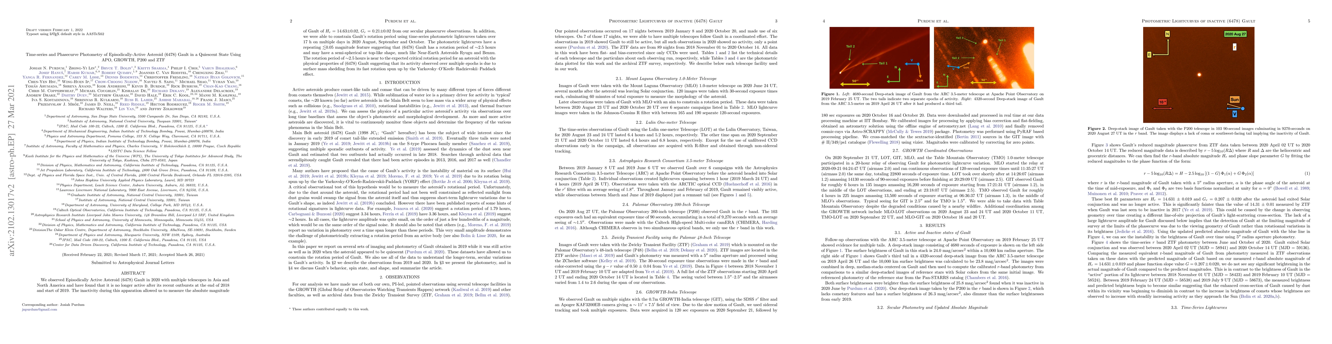 We observed Episodically Active Asteroid (6478) Gault in 2020 with multiple telescopes in Asia and North America and have found that it is no longer active after its recent outbursts at the end of 2018 and start of 2019. The inactivity during this apparation allowed us to measure the absolute magnitude of Gault of H_r = 14.63 +/- 0.02, G_r = 0.21 +/- 0.02 from our secular phasecurve observations. In addition, we were able to constrain Gault's rotation period using time-series photometric lightcurves taken over 17 hours on multiple days in 2020 August, September and October. The photometric lightcurves have a repeating $\lesssim$0.05 magnitude feature suggesting that (6478) Gault has a rotation period of ~2.5 hours and may have a semi-spherical or top-like shape, much like Near-Earth Asteroids Ryugu and Bennu. The rotation period of ~2.5 hours is near to the expected critical rotation period for an asteroid with the physical properties of (6478) Gault suggesting that its activity observed over multiple epochs is due to surface mass shedding from its fast rotation spun up by the Yarkovsky-O'Keefe-Radzievskii-Paddack effect.