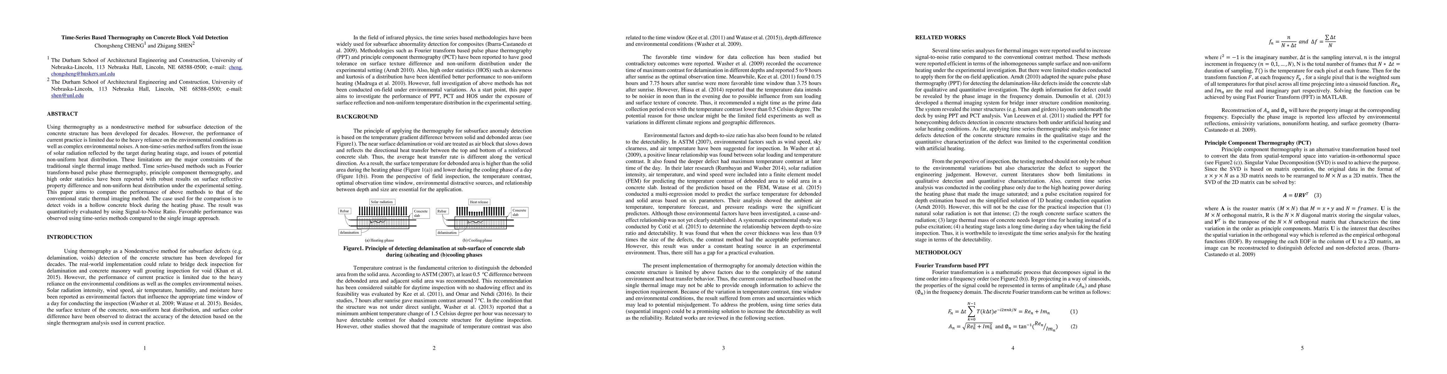 This paper evaluates the effectiveness of time-series thermography methods for detecting voids in concrete blocks, comparing them to conventional static thermal imaging. Results show that time-series methods, like Fourier transform-based pulse phase thermography, outperform static methods by providing better detection under varying environmental conditions.