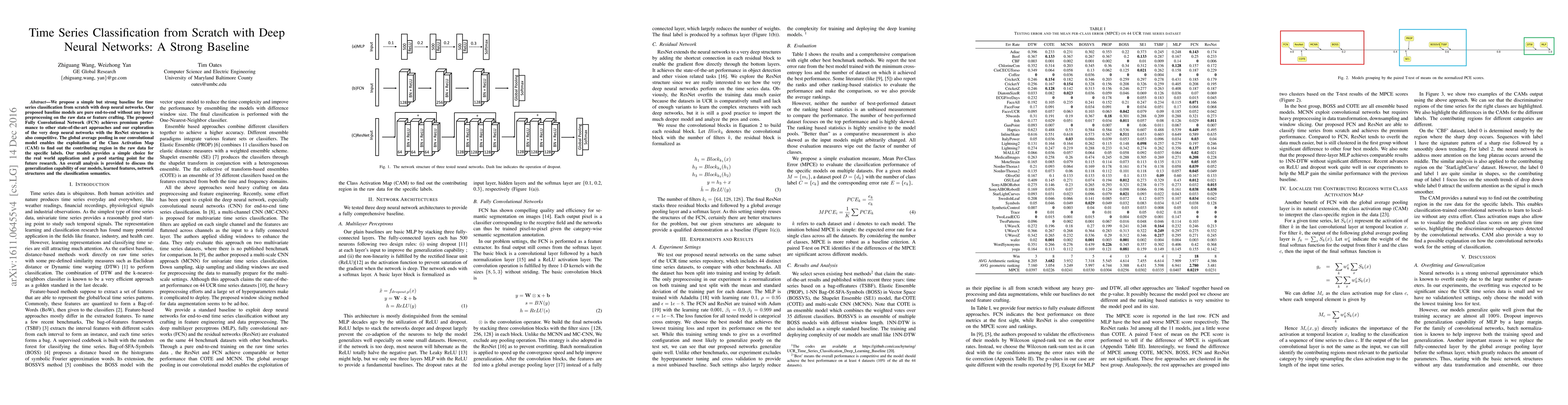 We propose a simple but strong baseline for time series classification from scratch with deep neural networks. Our proposed baseline models are pure end-to-end without any heavy preprocessing on the raw data or feature crafting. The proposed Fully Convolutional Network (FCN) achieves premium performance to other state-of-the-art approaches and our exploration of the very deep neural networks with the ResNet structure is also competitive. The global average pooling in our convolutional model enables the exploitation of the Class Activation Map (CAM) to find out the contributing region in the raw data for the specific labels. Our models provides a simple choice for the real world application and a good starting point for the future research. An overall analysis is provided to discuss the generalization capability of our models, learned features, network structures and the classification semantics.