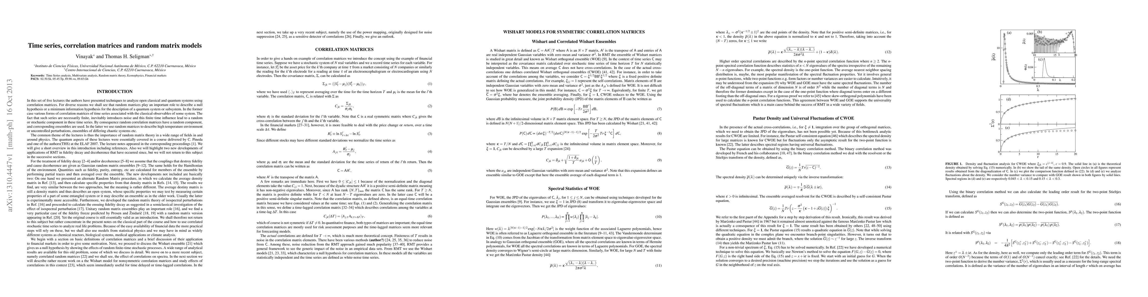 In this set of five lectures the authors have presented techniques to analyze open classical and quantum systems using correlation matrices. For diverse reasons we shall see that random matrices play an important role to describe a null hypothesis or a minimum information hypothesis for the description of a quantum system or subsystem. In the former case various forms of correlation matrices of time series associated with the classical observables of some system. The fact that such series are necessarily finite, inevitably introduces noise and this finite time influence lead to a random or stochastic component in these time series. By consequence random correlation matrices have a random component, and corresponding ensembles are used. In the latter we use random matrices to describe high temperature environment or uncontrolled perturbations, ensembles of differing chaotic systems etc.