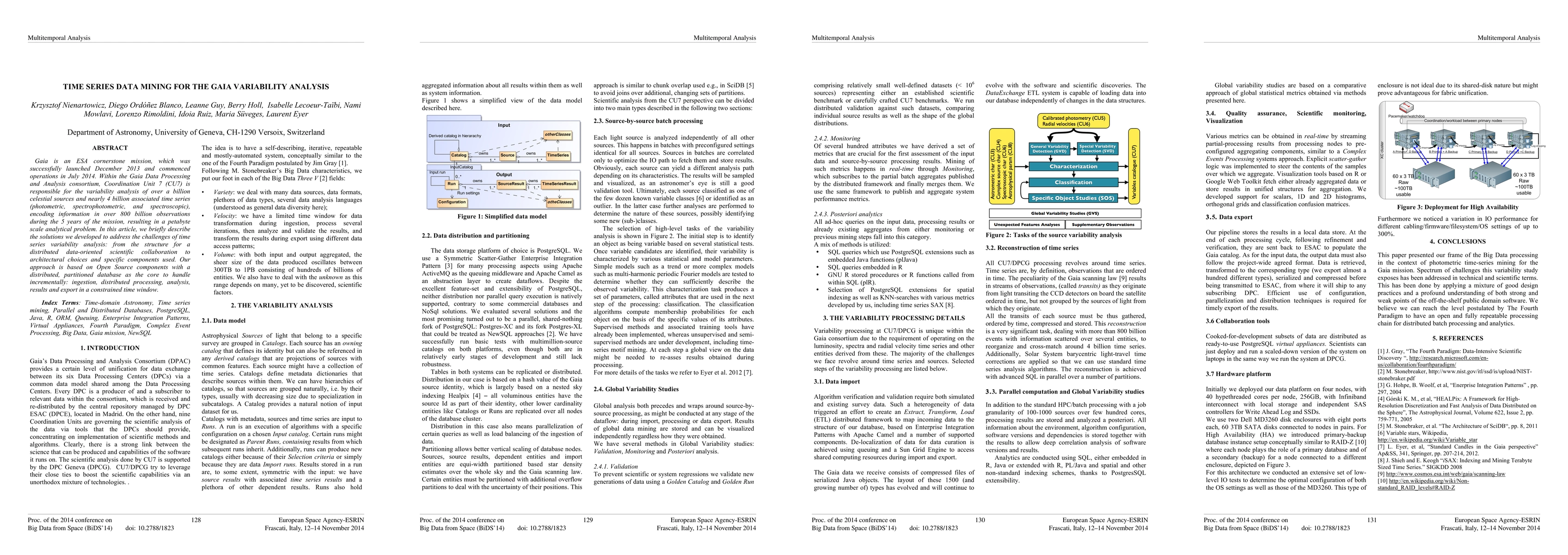 This paper outlines the solutions developed for the Gaia mission's variability analysis, focusing on time series data mining for over a billion celestial sources. It emphasizes the use of open-source components and a distributed, partitioned database to manage the petabyte scale of data efficiently.