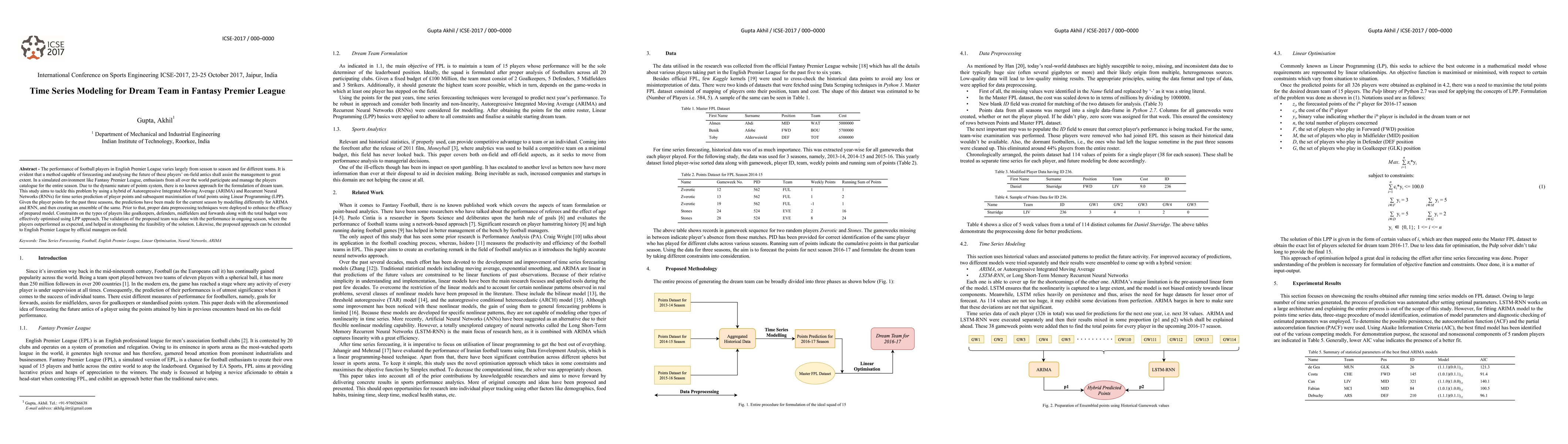 This study employs a hybrid ARIMA and RNN model to predict player points in the Fantasy Premier League and optimizes a dream team using Linear Programming. The ensemble model, validated by subsequent season performance, demonstrates effective forecasting and team maximization strategies.