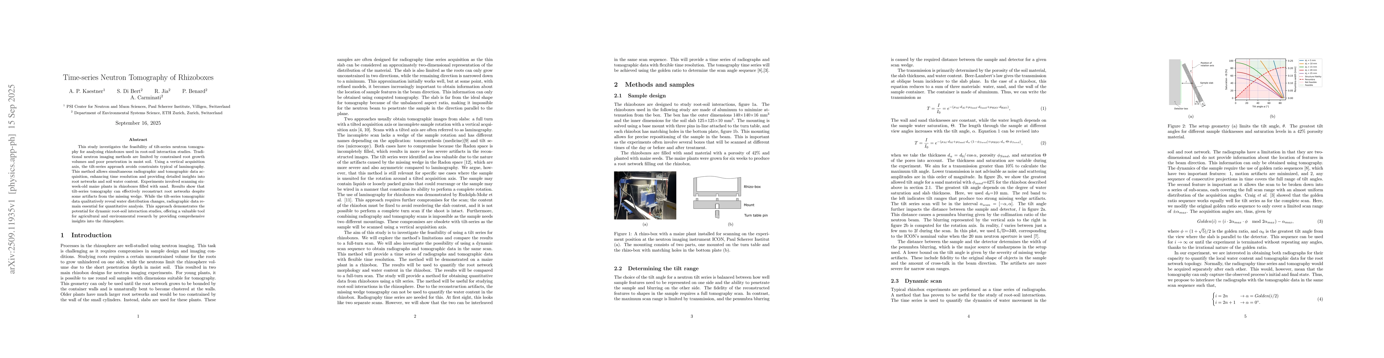 The study employs tilt-series neutron tomography to analyze rhizoboxes, combining radiographic and tomographic data acquisition using a golden ratio scan sequence to optimize time resolution and reduce motion artifacts.