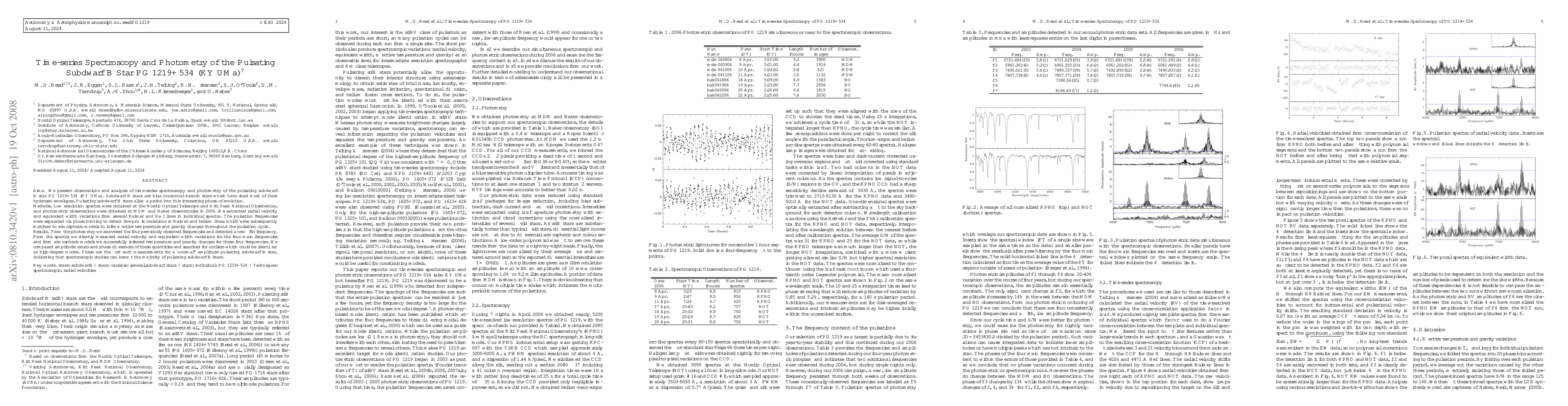 This paper presents time-series spectroscopy and photometry of the pulsating subdwarf B star PG 1219+534 (KY UMa), revealing five pulsation frequencies, including a new fifth one. Spectroscopic analysis detected radial velocity and equivalent width variations, while photometric data confirmed the frequencies and allowed for the inference of temperature and gravity changes throughout the pulsation cycle.