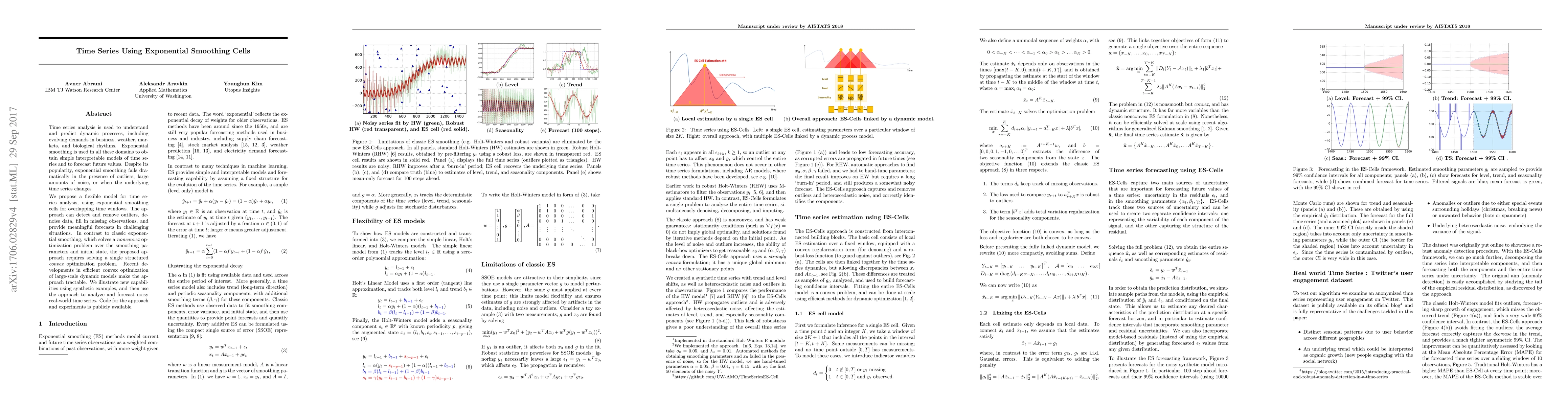 Time series analysis is used to understand and predict dynamic processes, including evolving demands in business, weather, markets, and biological rhythms. Exponential smoothing is used in all these domains to obtain simple interpretable models of time series and to forecast future values. Despite its popularity, exponential smoothing fails dramatically in the presence of outliers, large amounts of noise, or when the underlying time series changes. We propose a flexible model for time series analysis, using exponential smoothing cells for overlapping time windows. The approach can detect and remove outliers, denoise data, fill in missing observations, and provide meaningful forecasts in challenging situations. In contrast to classic exponential smoothing, which solves a nonconvex optimization problem over the smoothing parameters and initial state, the proposed approach requires solving a single structured convex optimization problem. Recent developments in efficient convex optimization of large-scale dynamic models make the approach tractable. We illustrate new capabilities using synthetic examples, and then use the approach to analyze and forecast noisy real-world time series. Code for the approach and experiments is publicly available.