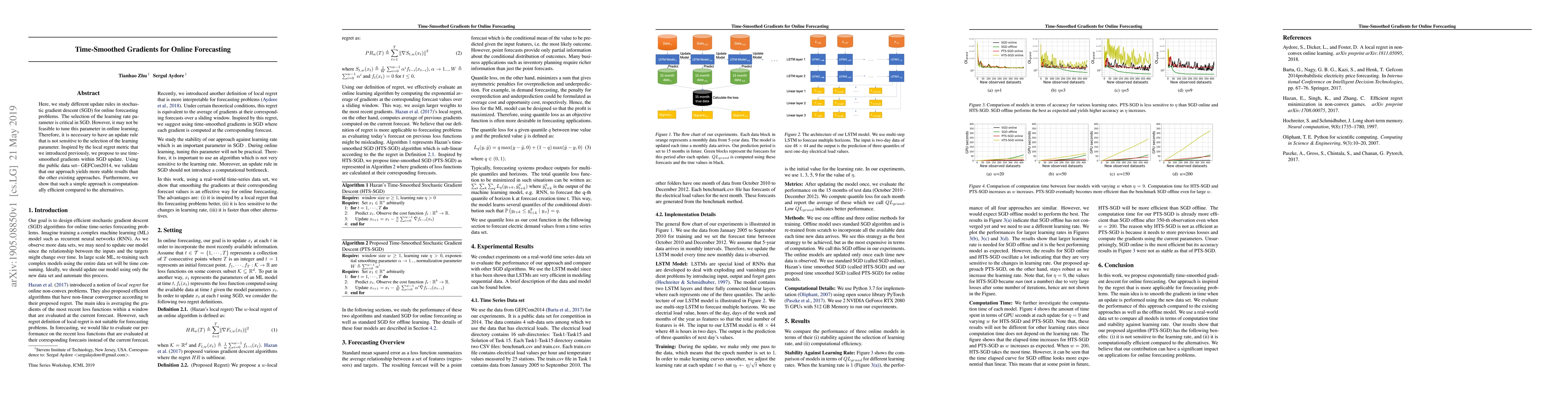 Here, we study different update rules in stochastic gradient descent (SGD) for online forecasting problems. The selection of the learning rate parameter is critical in SGD. However, it may not be feasible to tune this parameter in online learning. Therefore, it is necessary to have an update rule that is not sensitive to the selection of the learning parameter. Inspired by the local regret metric that we introduced previously, we propose to use time-smoothed gradients within SGD update. Using the public data set-- GEFCom2014, we validate that our approach yields more stable results than the other existing approaches. Furthermore, we show that such a simple approach is computationally efficient compared to the alternatives.