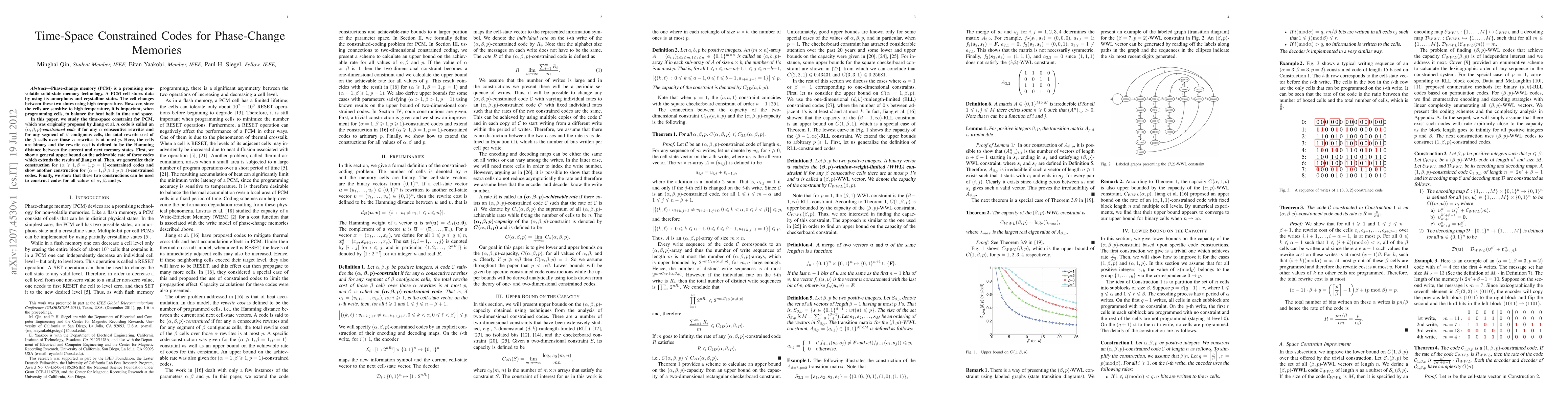 Phase-change memory (PCM) is a promising non-volatile solid-state memory technology. A PCM cell stores data by using its amorphous and crystalline states. The cell changes between these two states using high temperature. However, since the cells are sensitive to high temperature, it is important, when programming cells, to balance the heat both in time and space. In this paper, we study the time-space constraint for PCM, which was originally proposed by Jiang et al. A code is called an \emph{$(\alpha,\beta,p)$-constrained code} if for any $\alpha$ consecutive rewrites and for any segment of $\beta$ contiguous cells, the total rewrite cost of the $\beta$ cells over those $\alpha$ rewrites is at most $p$. Here, the cells are binary and the rewrite cost is defined to be the Hamming distance between the current and next memory states. First, we show a general upper bound on the achievable rate of these codes which extends the results of Jiang et al. Then, we generalize their construction for $(\alpha\geq 1, \beta=1,p=1)$-constrained codes and show another construction for $(\alpha = 1, \beta\geq 1,p\geq1)$-constrained codes. Finally, we show that these two constructions can be used to construct codes for all values of $\alpha$, $\beta$, and $p$.