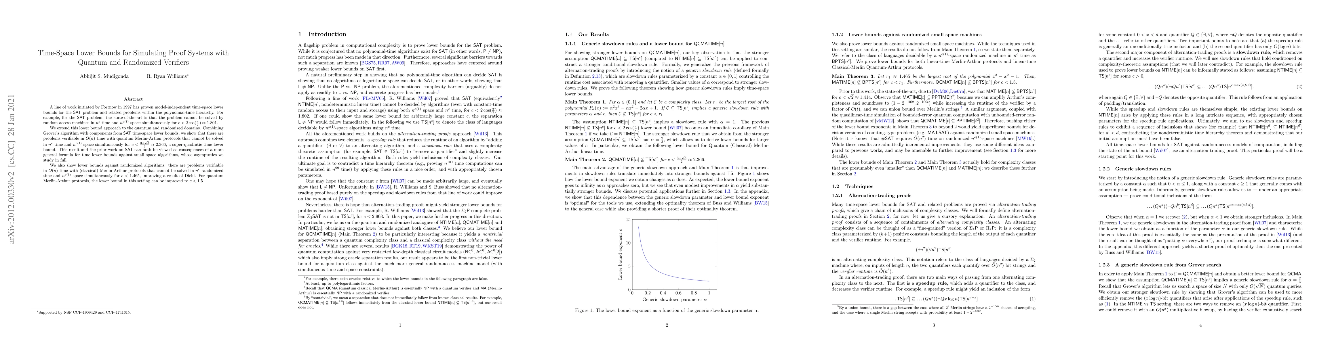 This paper extends time-space lower bounds for $\mathsf{SAT}$ problems to quantum and randomized verifiers, showing that certain problems cannot be solved in $n^c$ time and $n^{o(1)}$ space simultaneously for specific values of $c$. The quantum lower bound is super-quadratic, while the randomized lower bound improves upon previous results.
