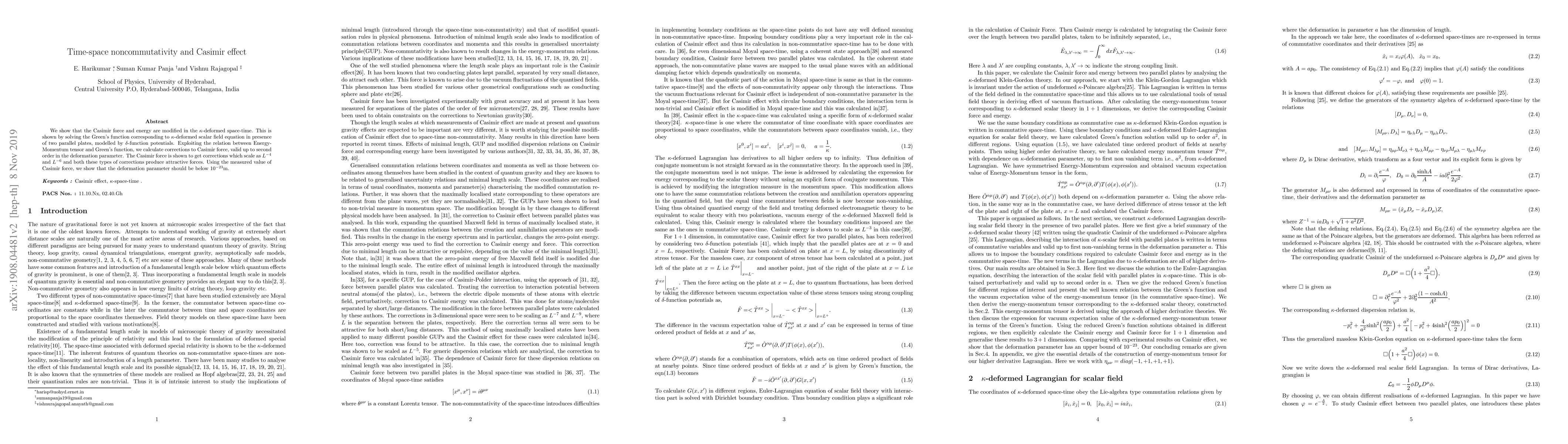 We show that the Casimir force and energy are modified in the kappa-deformed space-time. This is analysed by solving the Green's function corresponding to kappa-deformed scalar field equation in presence of two parallel plates, modelled by delta-function potentials. Exploiting the relation between energy-momentum tensor and Green's function, we calculate the correction to Casimir force, valid up to second order in the deformation parameter. The Casimir force is shown to get corrections which scale as $L^{-4}$ and $L^{-6}$ and both these types of corrections produce attractive forces. Using the measured value of Casimir force, we show that the deformation parameter should be below $10^{-23}$m.