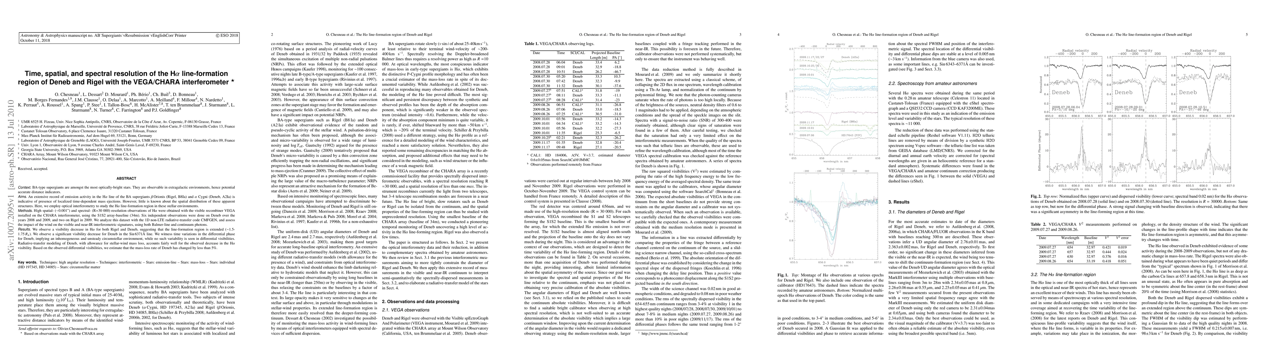 BA-type supergiants are amongst the most optically-bright stars. They are observable in extragalactic environments, hence potential accurate distance indicators. Emission activity in the Halpha line of the BA supergiants Rigel (B8Ia) and Deneb (A2Ia) is indicative of presence of localized time-dependent mass ejections. Here, we employ optical interferometry to study the Halpha line-formation region in these stellar environments. High spatial- (0.001 arcsec) and spectral- (R=30 000) resolution observations of Halpha were obtained with the visible recombiner VEGA installed on the CHARA interferometer, using the S1S2 array-baseline (34m). Six independent observations were done on Deneb over the years 2008 and 2009, and two on Rigel in 2009. We analyze this dataset with the 1D non-LTE radiative-transfer code CMFGEN, and assess the impact of the wind on the visible and near-IR interferometric signatures, using both Balmer-line and continuum photons. We observe a visibility decrease in Halpha for both Rigel and Deneb, suggesting that the line-formation region is extended (1.5-1.75 R*). We observe a significant visibility decrease for Deneb in the SiII6371 line. We witness time variations in the differential phase for Deneb, implying an inhomogeneous and unsteady circumstellar environment, while no such variability is seen in differential visibilities. Radiative-transfer modeling of Deneb, with allowance for stellar-wind mass loss, accounts fairly well for the observed decrease in the Halpha visibility. Based on the observed differential visibilities, we estimate that the mass-loss rate of Deneb has changed by less than 5%.