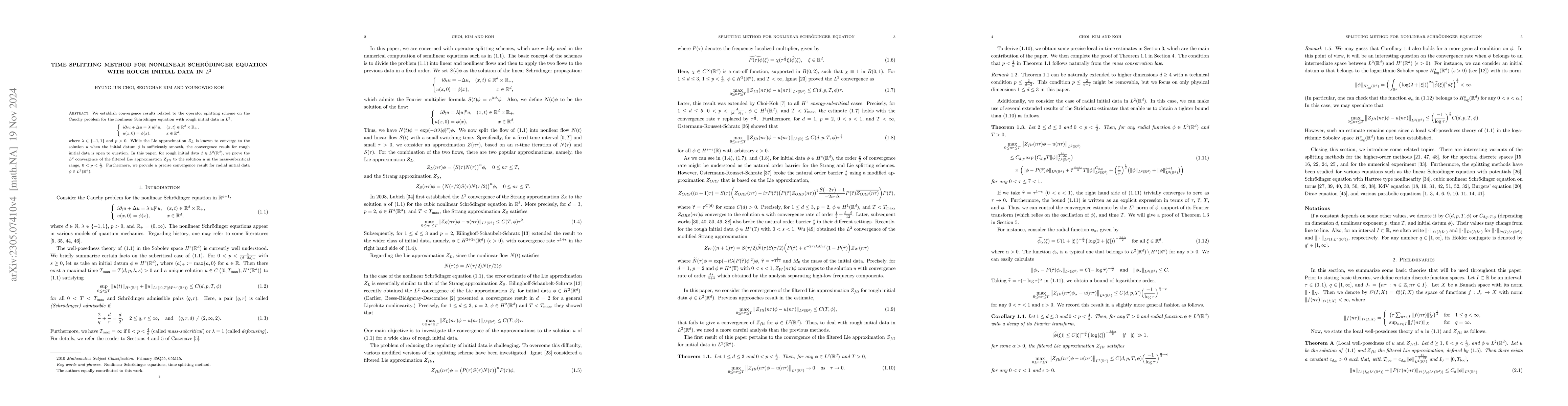 This paper establishes convergence results for the operator splitting method applied to the nonlinear Schrödinger equation with rough initial data in $L^2$. The filtered Lie approximation $Z_{flt}$ is shown to converge to the solution $u$ in the mass-subcritical range, and a precise convergence result is provided for radial initial data.