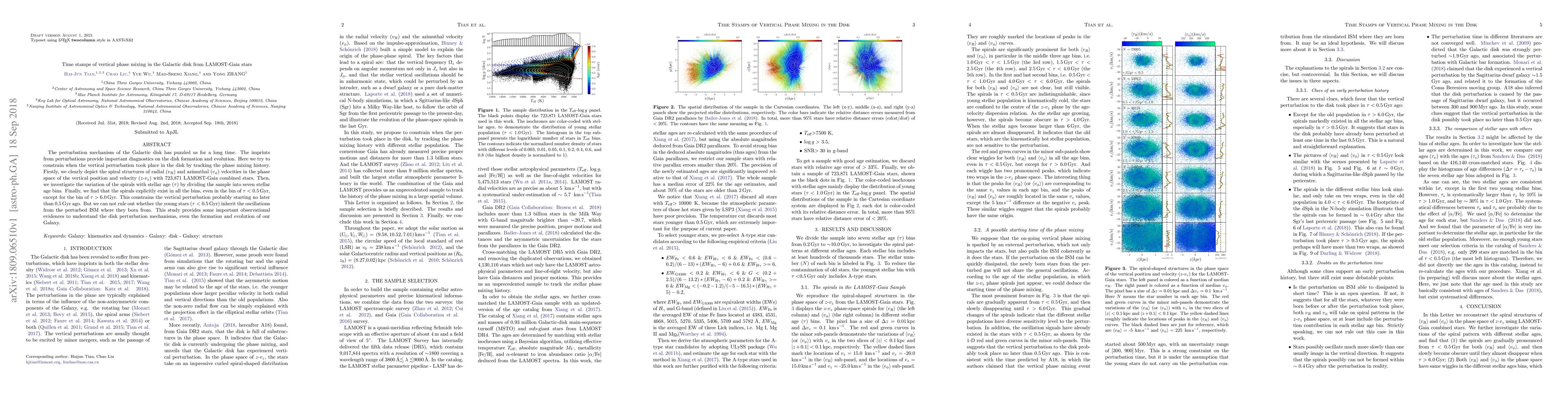 This study uses 723,871 LAMOST-Gaia stars to trace vertical phase mixing in the Galactic disk, revealing spiral structures in the $z$-$v_z$ phase space. The analysis suggests that vertical perturbations likely began no later than 0.5 Gyr ago, though the origin of oscillations in younger stars remains uncertain.