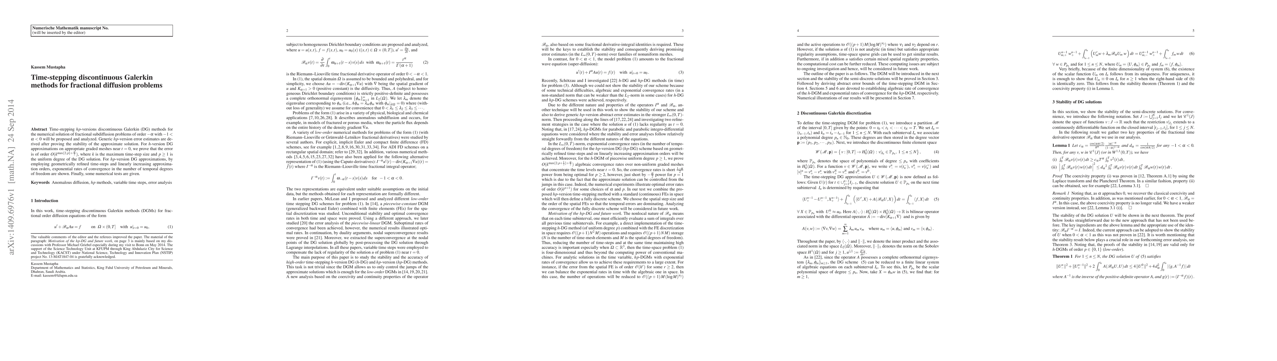 The research proposes and analyzes time-stepping $hp$-versions discontinuous Galerkin (DG) methods for fractional subdiffusion problems of order $-\alpha$ with $-1<\alpha<0$, deriving generic $hp$-version error estimates and proving stability of the approximate solution.
