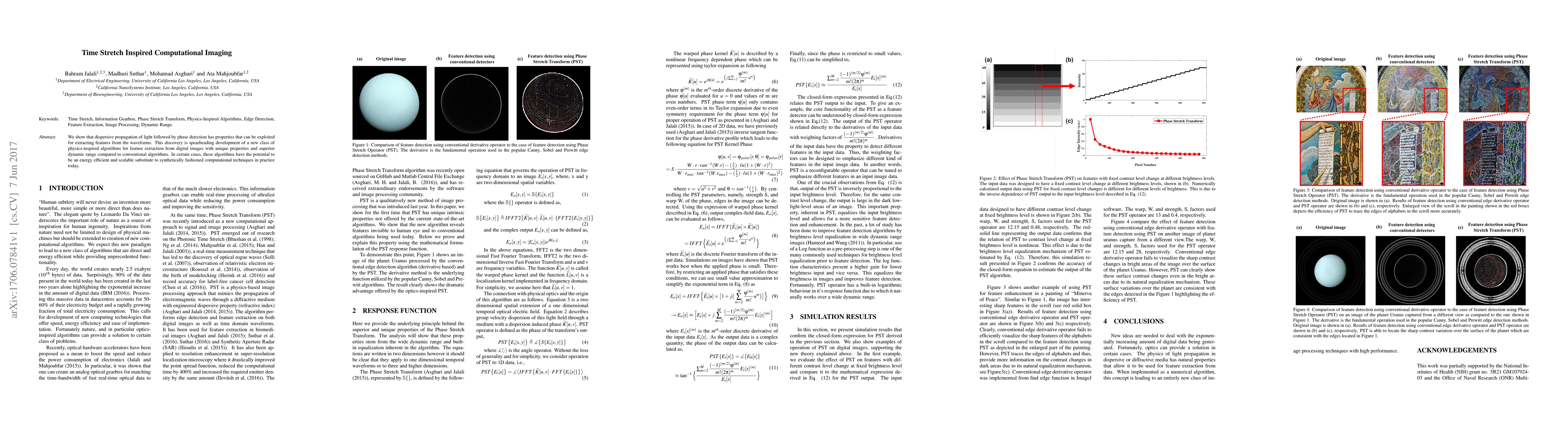 We show that dispersive propagation of light followed by phase detection has properties that can be exploited for extracting features from the waveforms. This discovery is spearheading development of a new class of physics-inspired algorithms for feature extraction from digital images with unique properties and superior dynamic range compared to conventional algorithms. In certain cases, these algorithms have the potential to be an energy efficient and scalable substitute to synthetically fashioned computational techniques in practice today.