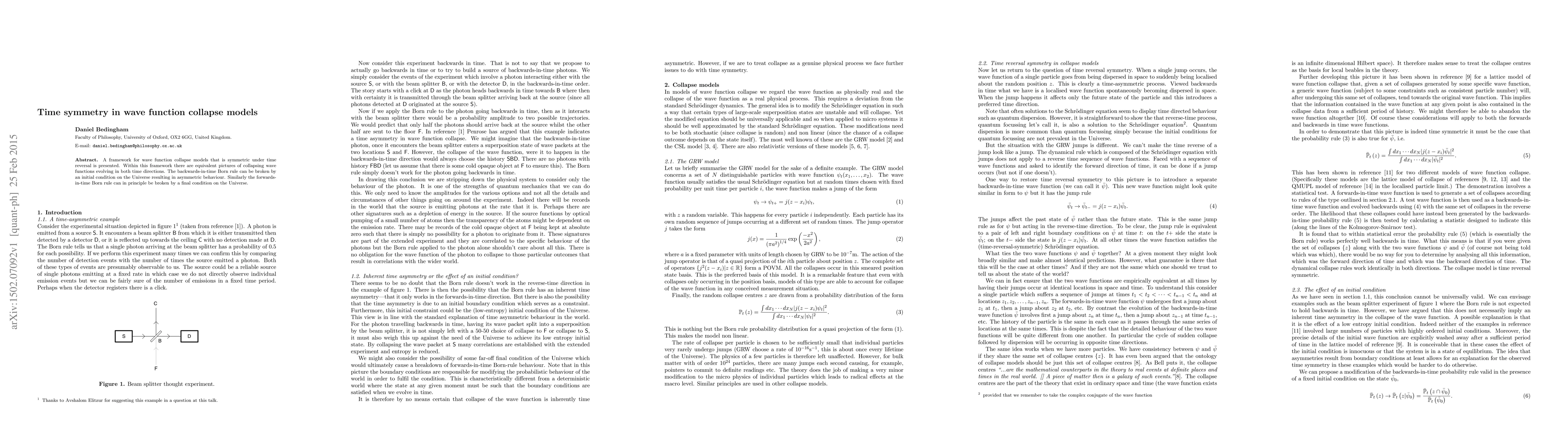 This paper proposes a time-symmetric framework for wave function collapse models, allowing for equivalent interpretations of wave function collapse in both forward and backward time directions. The asymmetry in observed collapse behavior can be attributed to initial or final conditions on the Universe.