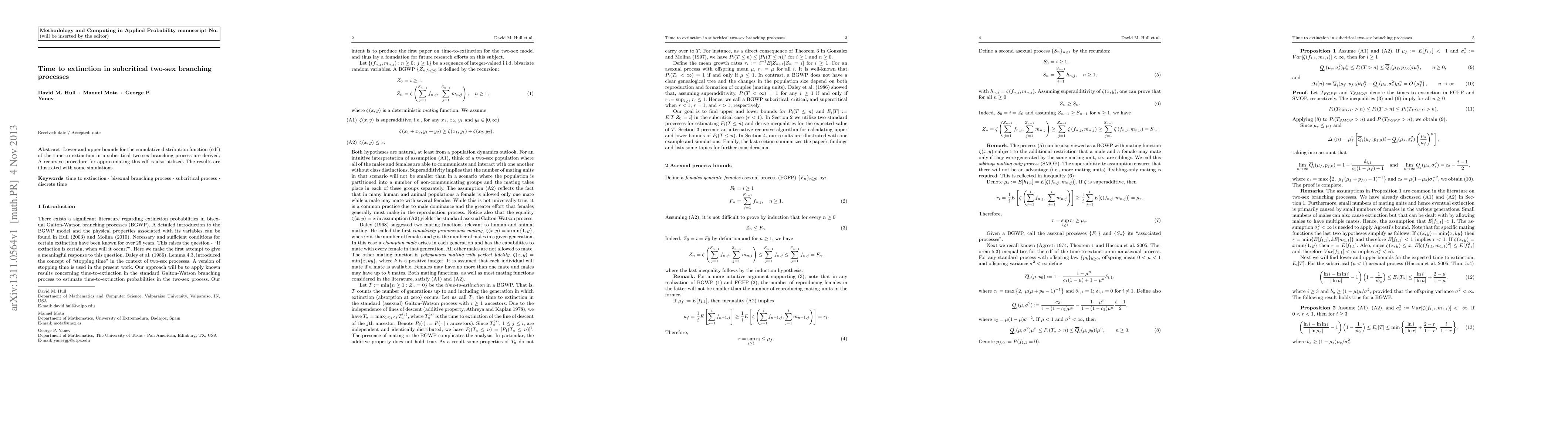 Research finds bounds for time to extinction in subcritical two-sex branching processes, providing a tool for approximating the probability of population collapse.