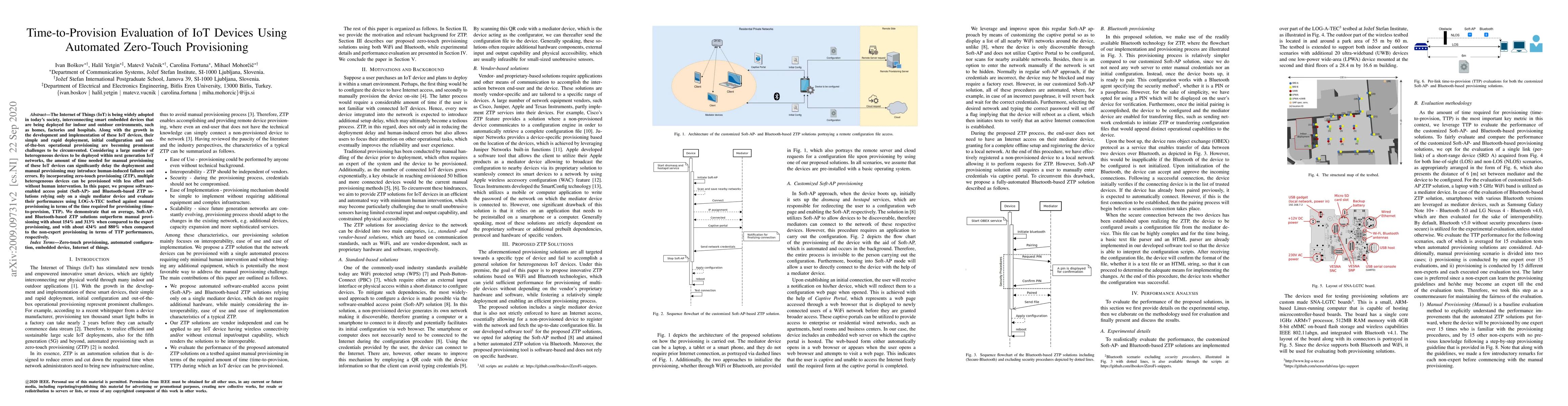This paper proposes automated zero-touch provisioning (ZTP) solutions using Soft-AP and Bluetooth to rapidly deploy IoT devices, significantly reducing provisioning time compared to manual methods. The evaluation shows that ZTP solutions outperform manual provisioning by 154-880% in terms of time-to-provision.