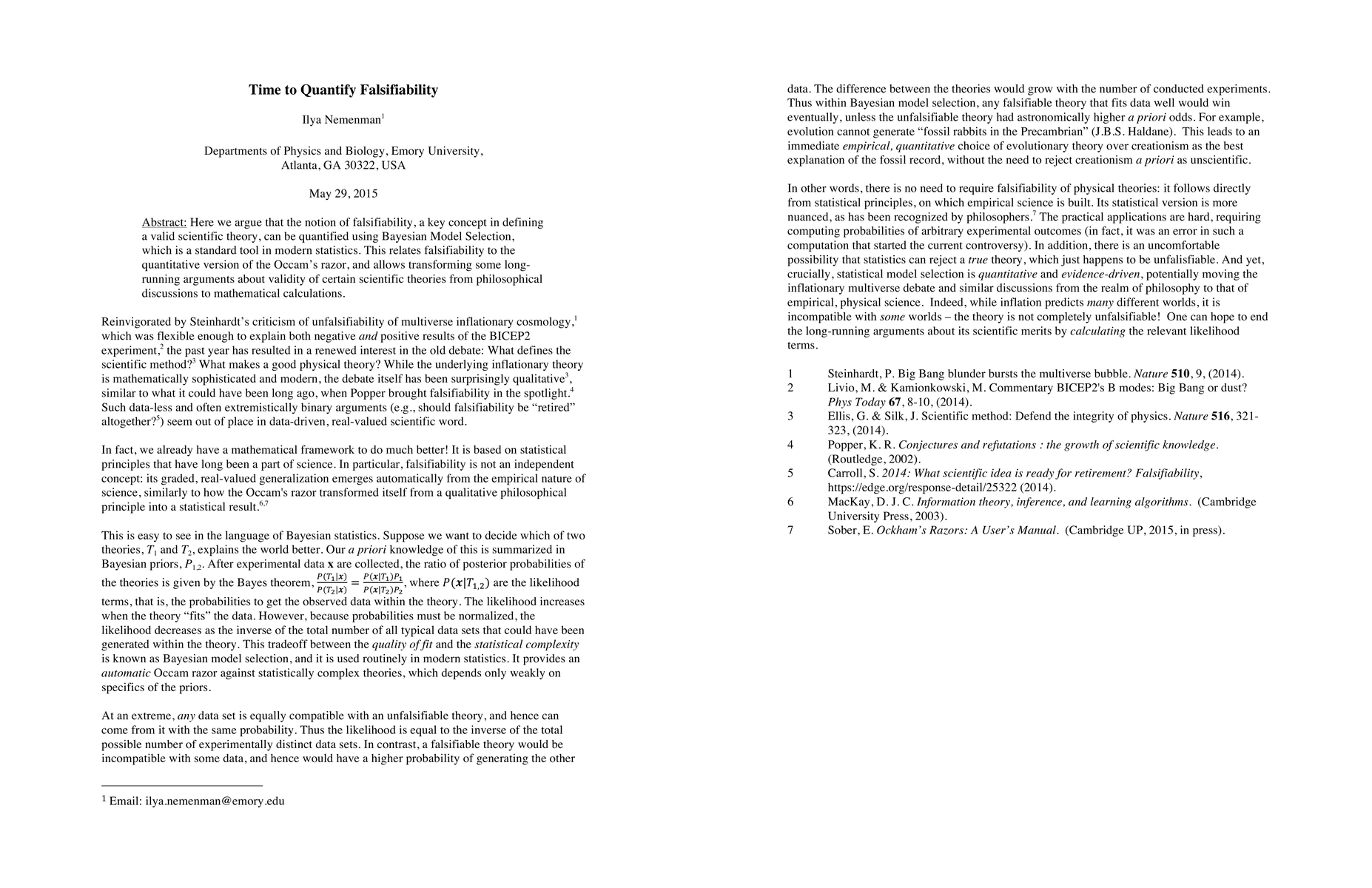 This approach relates falsifiability to the Occam's razor principle, enabling a more objective assessment of scientific theories.