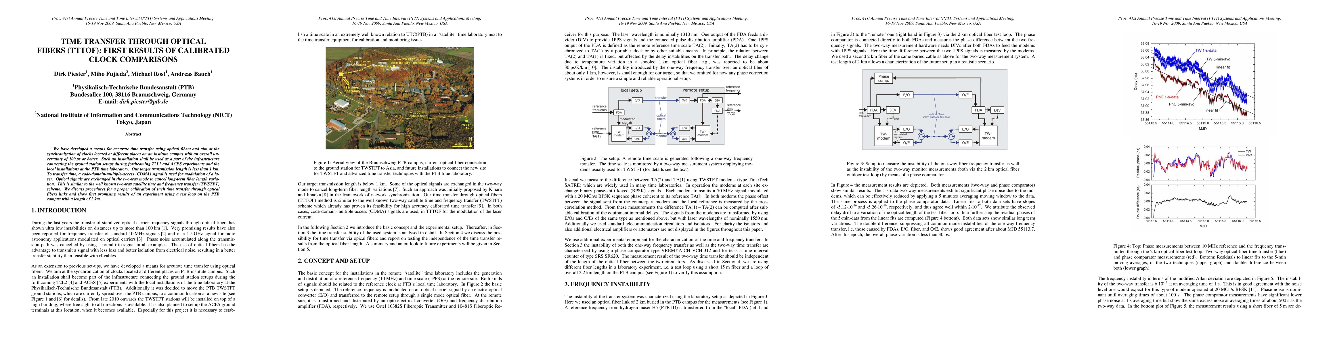 Researchers have developed a method for accurate time transfer through optical fibers with an uncertainty of 100 ps or better, aiming to synchronize clocks across different locations on a campus. Initial results from a 2-km test loop show promising outcomes in this innovative approach.