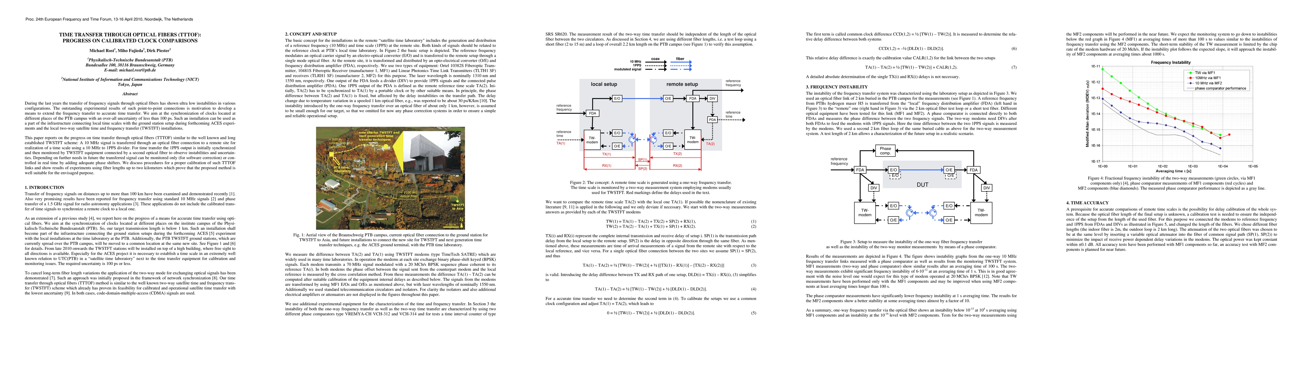 Researchers have successfully transferred time signals through optical fibers with ultra-low instabilities, paving the way for accurate time transfer over long distances, and aiming to achieve an overall uncertainty of less than 100 ps.