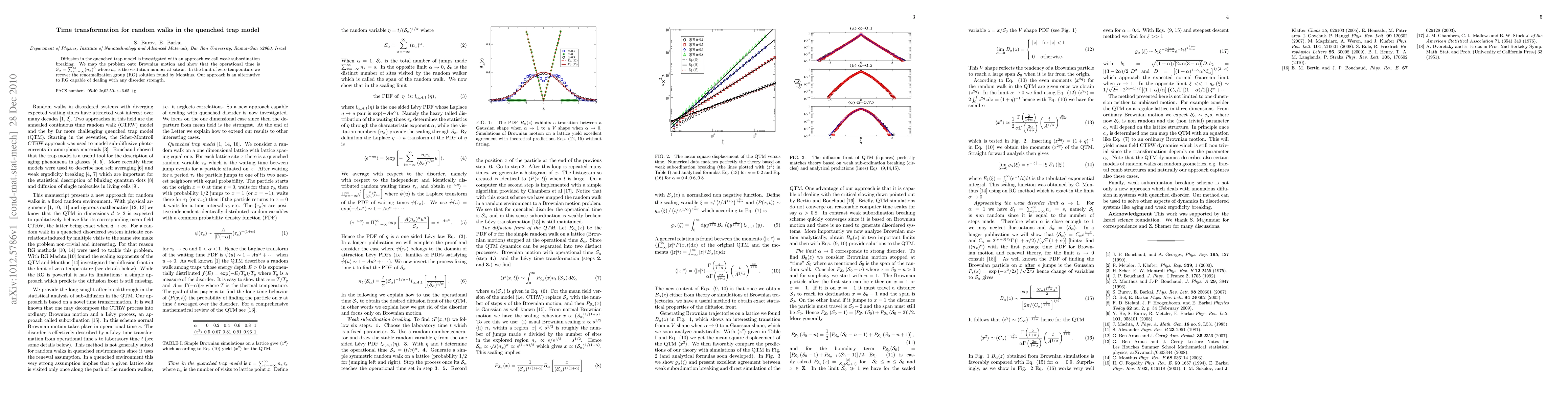 Diffusion in the quenched trap model is investigated with an approach we call weak subordination breaking. We map the problem onto Brownian motion and show that the operational time is ${\cal S}_\alpha = \sum_{x=-\infty} ^\infty (n_x)^\alpha$ where $n_x$ is the visitation number at site $x$ . In the limit of zero temperature we recover the renormalization group (RG) solution found by Monthus. Our approach is an alternative to RG capable of dealing with any disorder strength.