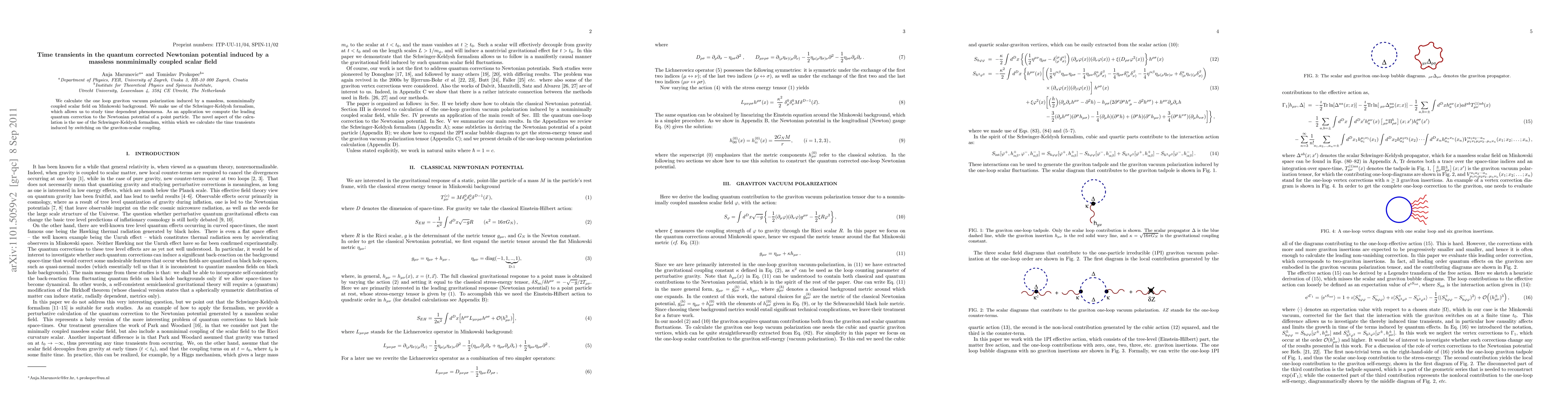 This paper calculates the one-loop graviton vacuum polarization from a massless, nonminimally coupled scalar field using the Schwinger-Keldysh formalism. It focuses on the time transients in the quantum corrected Newtonian potential when the graviton-scalar coupling is switched on.