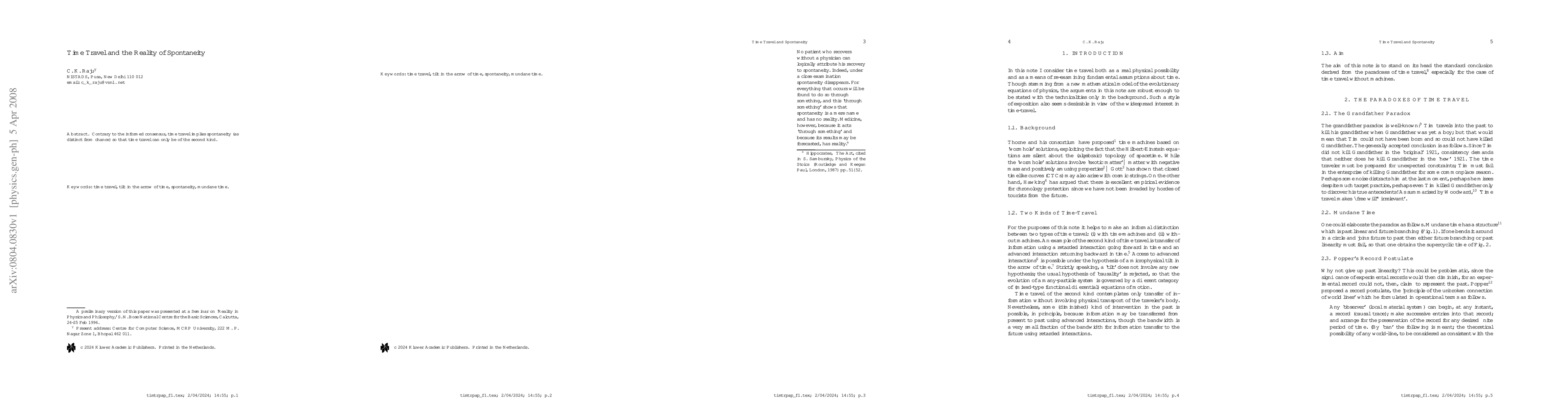 Summary: This paper challenges the prevailing view on time travel, arguing that it inherently involves spontaneity rather than mere chance, thereby classifying time travel as a second kind phenomenon. The author posits that this form of time travel is distinct and significant in its implications.