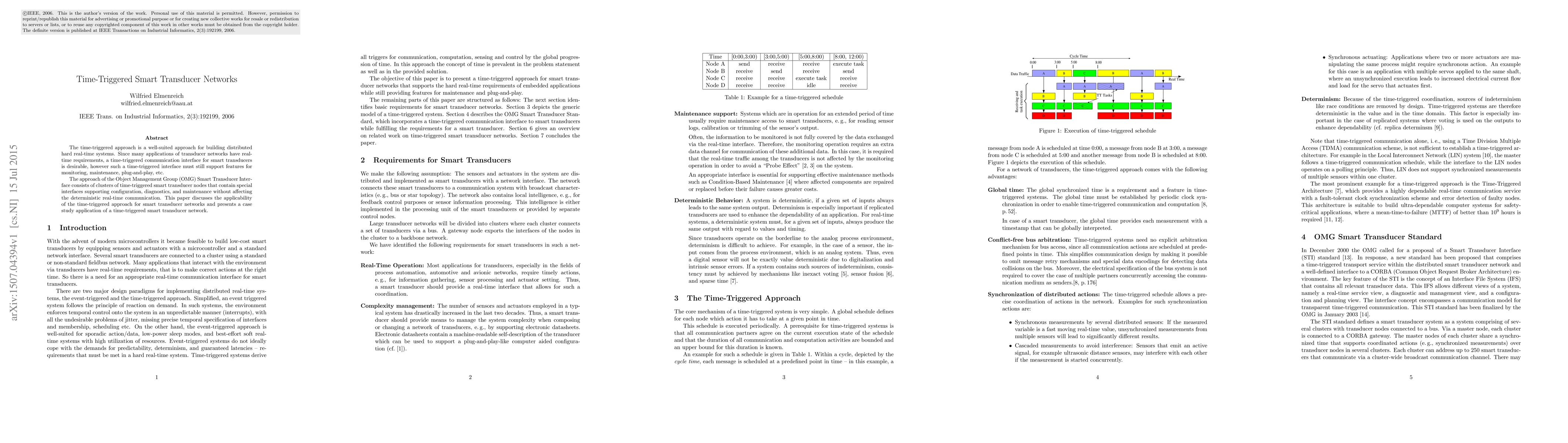 This paper explores the time-triggered approach for constructing distributed hard real-time systems, specifically for smart transducer networks, and introduces a communication interface that maintains real-time performance while supporting monitoring and maintenance. A case study application demonstrates the practical implementation of this approach.