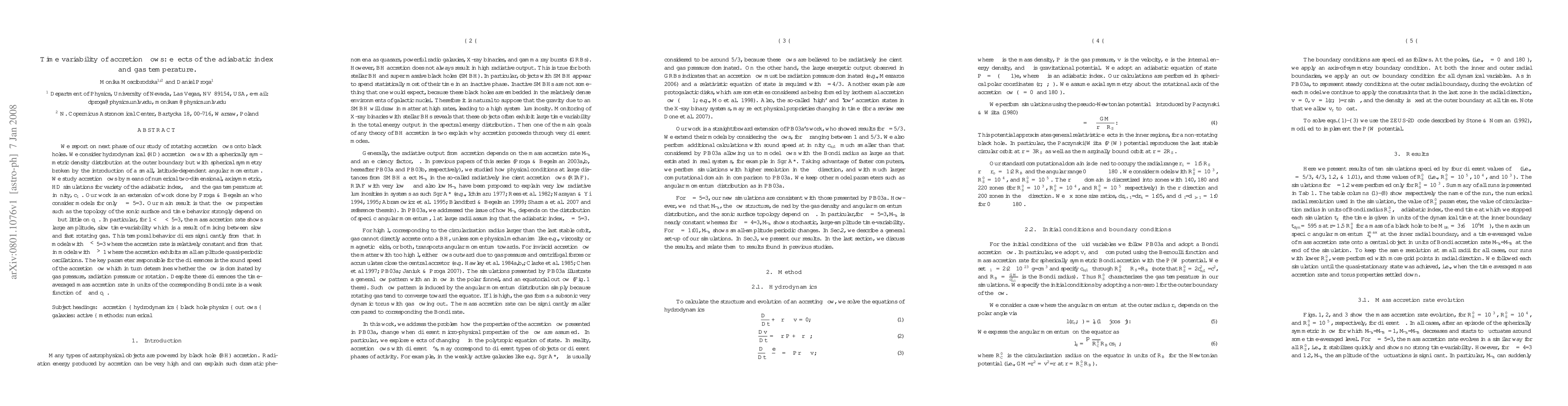 We report on next phase of our study of rotating accretion flows onto black holes. We consider hydrodynamical (HD) accretion flows with a spherically symmetric density distribution at the outer boundary but with spherical symmetry broken by the introduction of a small, latitude-dependent angular momentum. We study accretion flows by means of numerical two-dimensional, axisymmetric, HD simulations for variety of the adiabatic index, $\gamma$ and the gas temperature at infinity, $c_\infty$. Our work is an extension of work done by Proga & Begelman who consider models for only $\gamma=5/3$. Our main result is that the flow properties such as the topology of the sonic surface and time behavior strongly depend on $\gamma$ but little on $c_\infty$. In particular, for $1 < \gamma < 5/3$, the mass accretion rate shows large amplitude, slow time-variability which is a result of mixing between slow and fast rotating gas. This temporal behavior differs significantly from that in models with $\gamma\simless 5/3$ where the accretion rate is relatively constant and from that in models with $\gamma\simgreat 1$ where the accretion exhibits small amplitude quasi-periodic oscillations. The key parameter responsible for the differences is the sound speed of the accretion flow which in turn determines whether the flow is dominated by gas pressure, radiation pressure or rotation. Despite these differences the time-averaged mass accretion rate in units of the corresponding Bondi rate is a weak function of $\gamma$ and $c_\infty$.