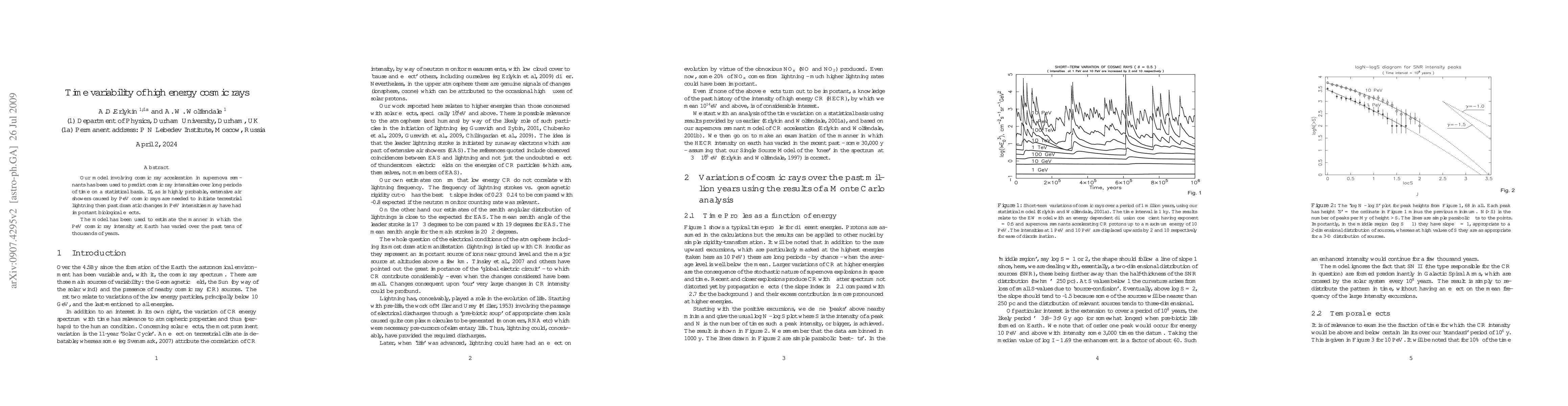 A model of cosmic ray acceleration in supernova remnants suggests that past dramatic changes in high-energy cosmic rays may have had significant biological effects on Earth. The study estimates that the PeV cosmic ray intensity at Earth has varied over tens of thousands of years.