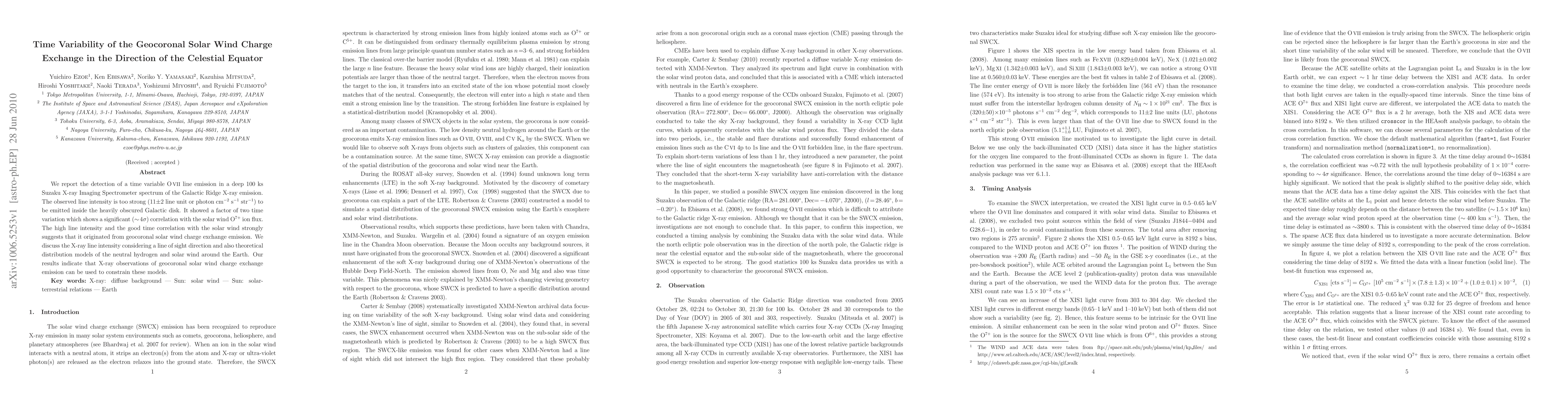 This paper reports the detection of a time-variable OVII line emission in the Galactic Ridge X-ray emission, suggesting it originates from geocoronal solar wind charge exchange. The observed line intensity correlates significantly with the solar wind O^7+ ion flux, indicating potential for using X-ray observations to constrain models of neutral hydrogen and solar wind distribution.