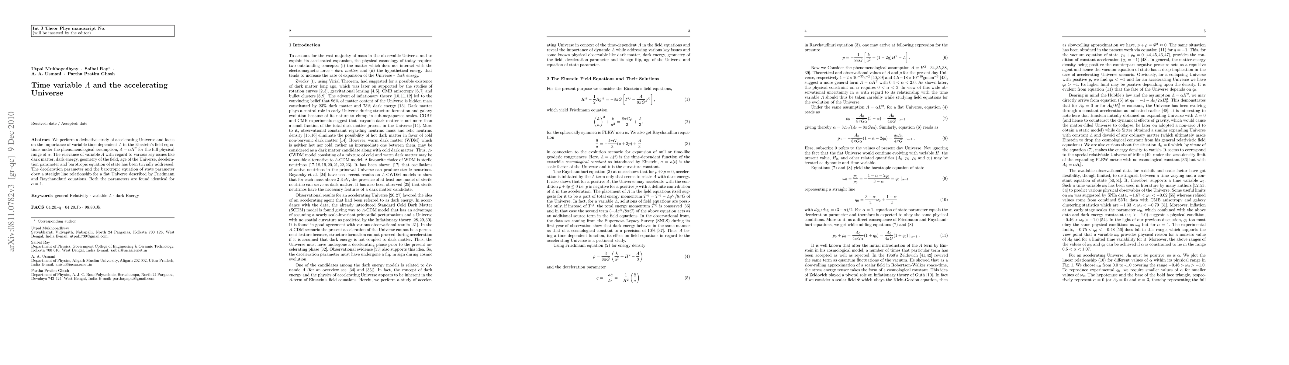 We perform a deductive study of accelerating Universe and focus on the importance of variable time-dependent $\Lambda$ in the Einstein's field equations under the phenomenological assumption, $\Lambda =\alpha H^2$ for the full physical range of $\alpha$. The relevance of variable $\Lambda$ with regard to various key issues like dark matter, dark energy, geometry of the field, age of the Universe, deceleration parameter and barotropic equation of state has been trivially addressed. The deceleration parameter and the barotropic equation of state parameter obey a straight line relationship for a flat Universe described by Friedmann and Raychaudhuri equations. Both the parameters are found identical for $\alpha = 1$.