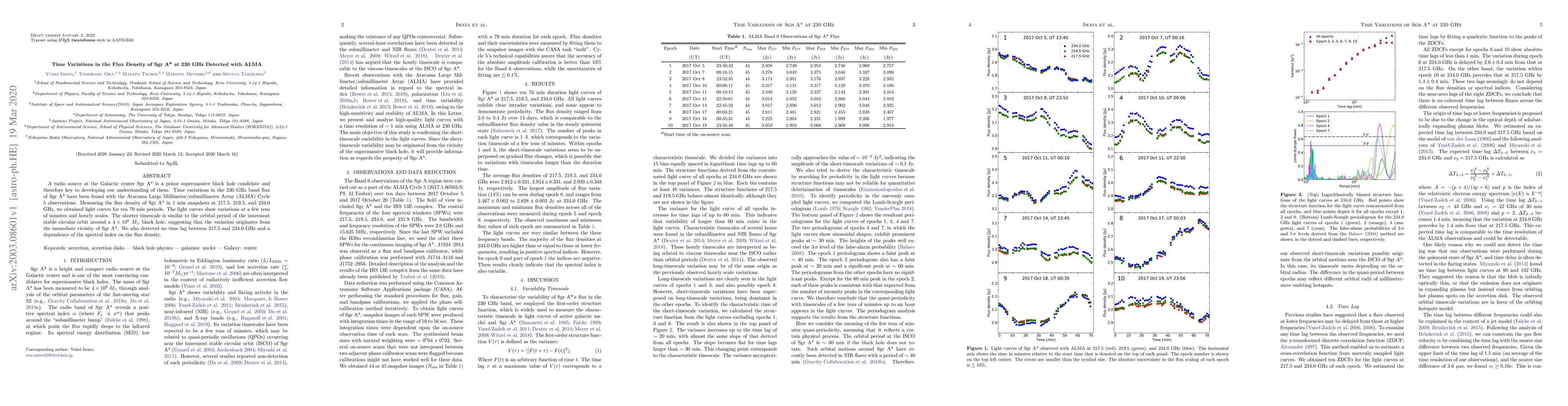 Researchers detected time variations in the flux density of Sgr A*, a prime supermassive black hole candidate, with ALMA observations at 230 GHz. These variations suggest that they originate from the immediate vicinity of Sgr A* and may be related to its orbital period.