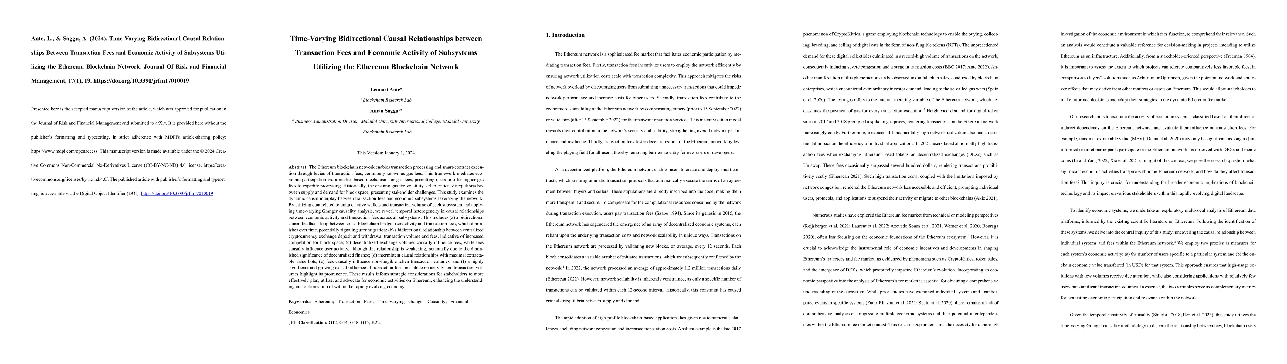 The Ethereum blockchain network enables transaction processing and smart-contract execution through levies of transaction fees, commonly known as gas fees. This framework mediates economic participation via a market-based mechanism for gas fees, permitting users to offer higher gas fees to expedite pro-cessing. Historically, the ensuing gas fee volatility led to critical disequilibria between supply and demand for block space, presenting stakeholder challenges. This study examines the dynamic causal interplay between transaction fees and economic subsystems leveraging the network. By utilizing data related to unique active wallets and transaction volume of each subsystem and applying time-varying Granger causality analysis, we reveal temporal heterogeneity in causal relationships between economic activity and transaction fees across all subsystems. This includes (a) a bidirectional causal feedback loop between cross-blockchain bridge user activity and transaction fees, which diminishes over time, potentially signaling user migration; (b) a bidirectional relationship between centralized cryptocurrency exchange deposit and withdrawal transaction volume and fees, indicative of increased competition for block space; (c) decentralized exchange volumes causally influence fees, while fees causally influence user activity, although this relationship is weakening, potentially due to the diminished significance of decentralized finance; (d) intermittent causal relationships with maximal extractable value bots; (e) fees causally in-fluence non-fungible token transaction volumes; and (f) a highly significant and growing causal influence of transaction fees on stablecoin activity and transaction volumes highlight its prominence.
