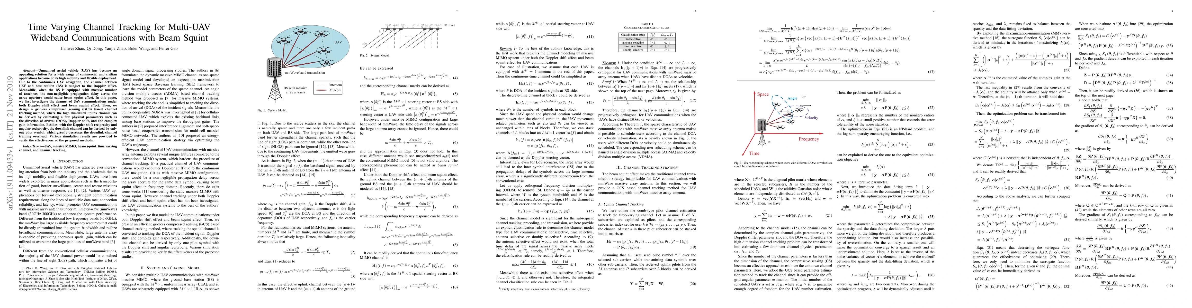 This paper investigates the Doppler shift and beam squint effects in UAV communications, proposing a gridless compressed sensing (GCS) method for efficient channel tracking. The method estimates key parameters like DOA, Doppler shift, and complex gain, significantly reducing downlink channel training overhead with reciprocity assumptions.